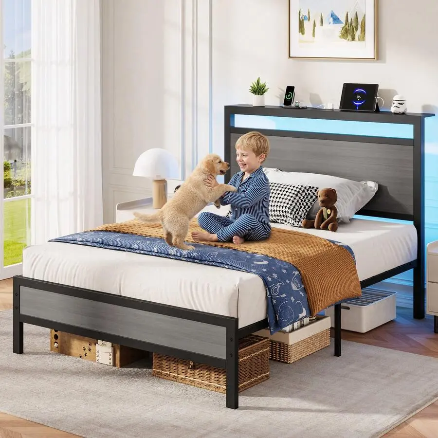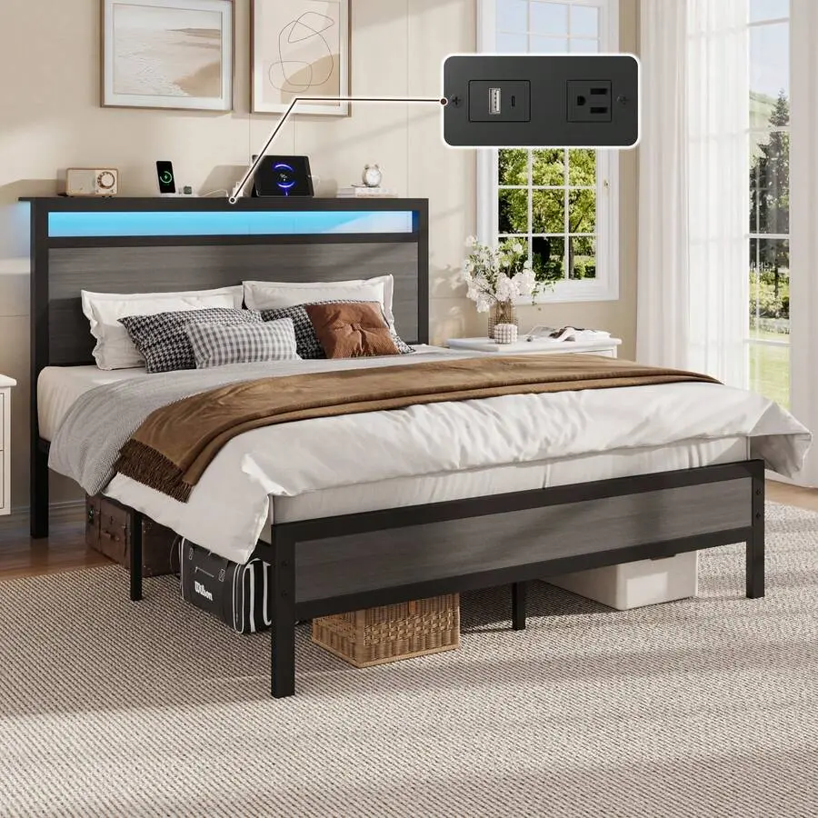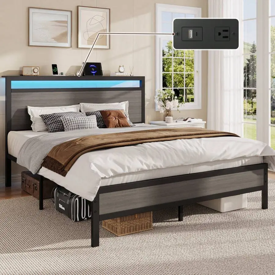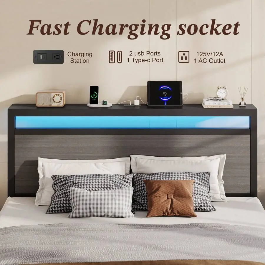 [STAY CONNECTED & POWERED UP]: Industrial headboard features an integrated charging station equipped with 1 standard outlets, 1 USB port, and 1 Type-C port.Charge your smartphone, tablet, or laptop conveniently right from your bedside, eliminating the need for cluttered adapters and searching for outlets behind furniture;