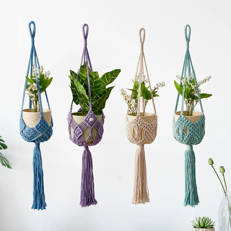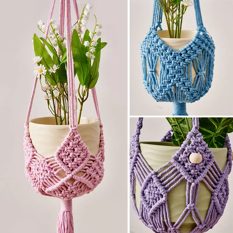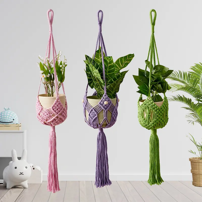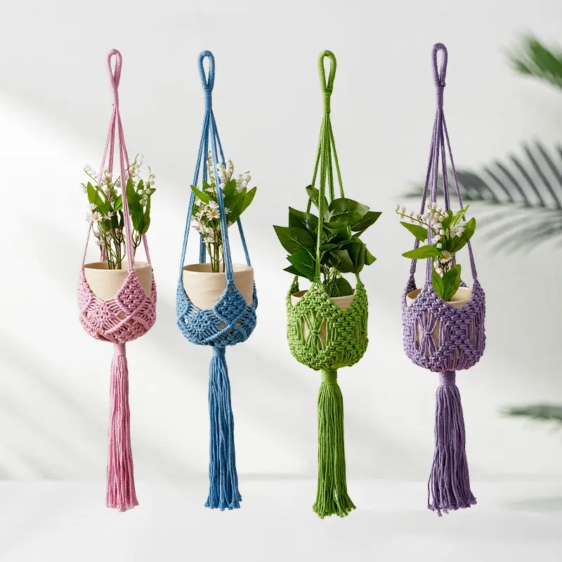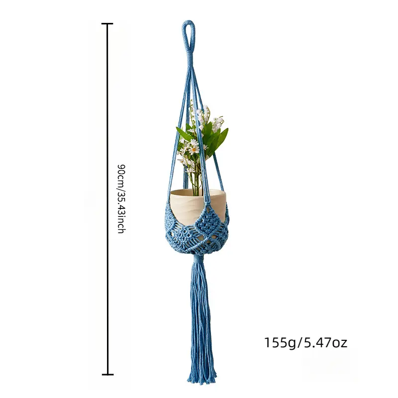 Handmade Cotton Rope Plant Hanger – Macrame Flower Pot Holder, Hanging Basket for Indoor Outdoor Plants, Modern Simple Style, Bohemian Woven Home Decor for Living Room Balcony