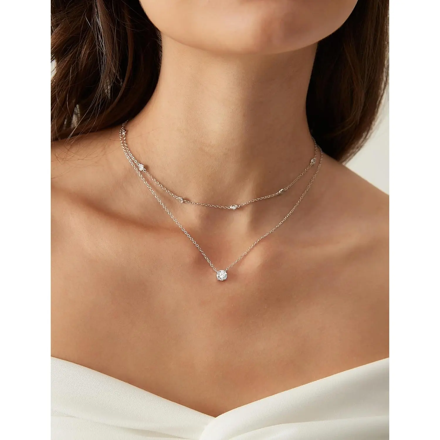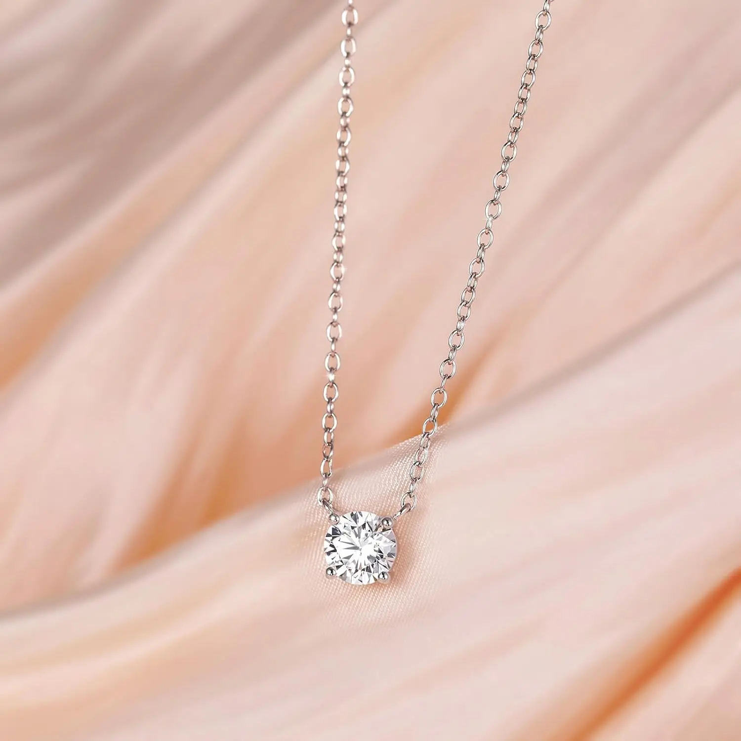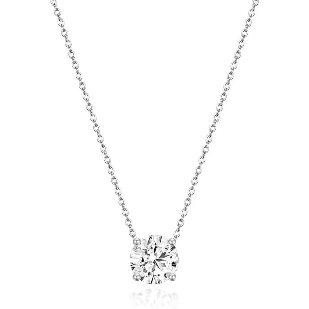 1 Carat CZ Solitaire Tennis Necklace for Women| 925 Sterling Silver Round Cut Cubic Zirconia, Elegant Everyday & Anniversary Jewelry Gift