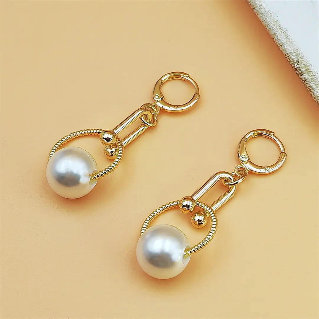Pearl Inlaid Long Tassel Drop Earrings Geometric Hoop Design Simple Elegant Fashion Jewelry For Women