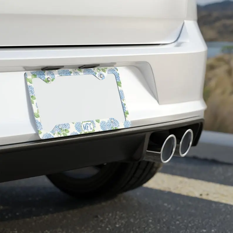 Blue Hydrangea License Plate Frame: Personalized Floral Car Decor