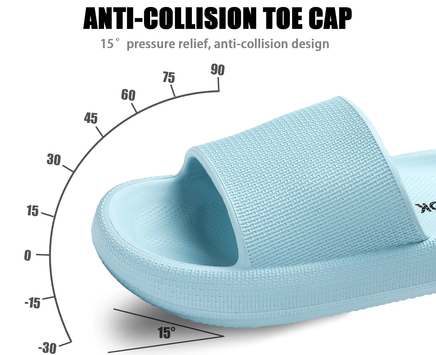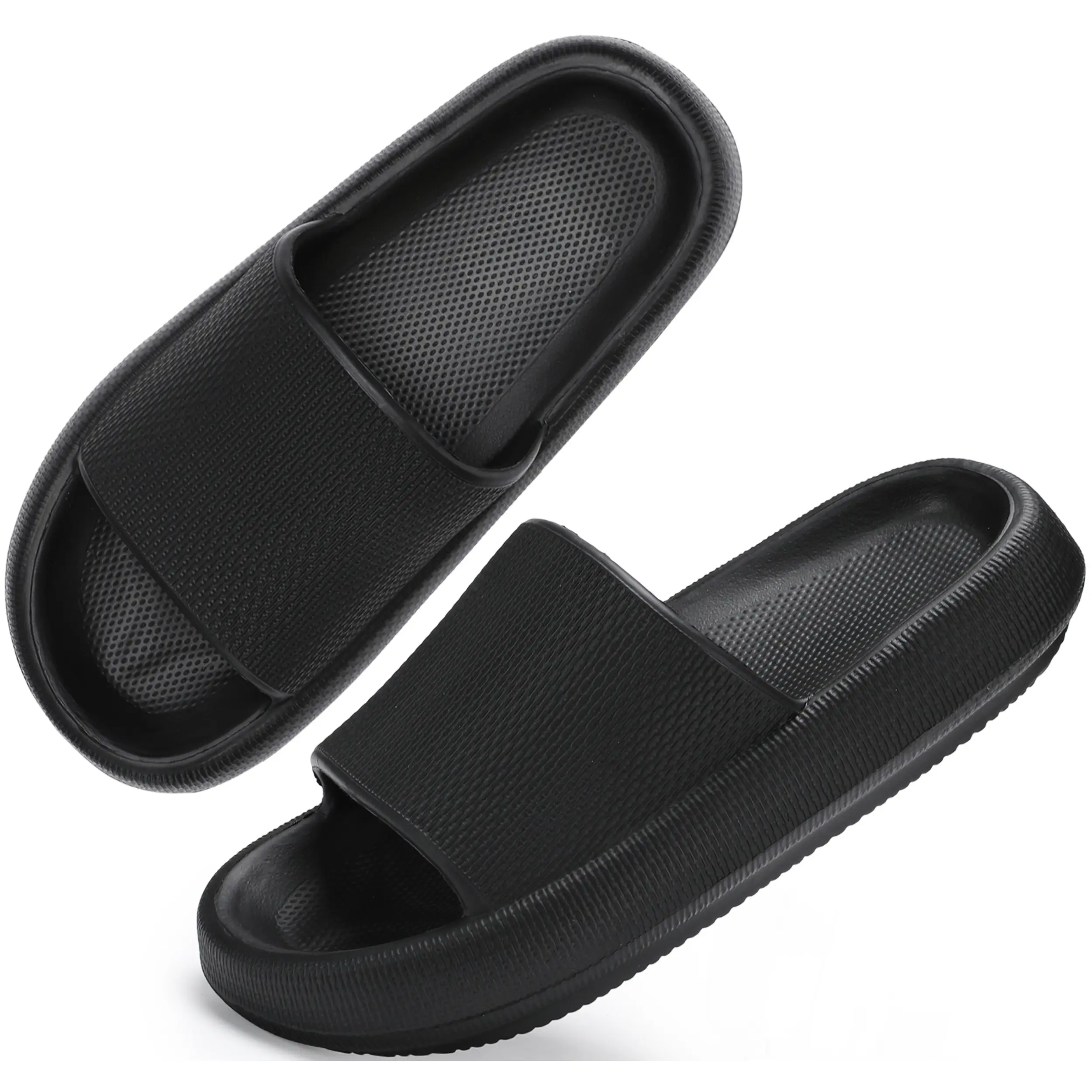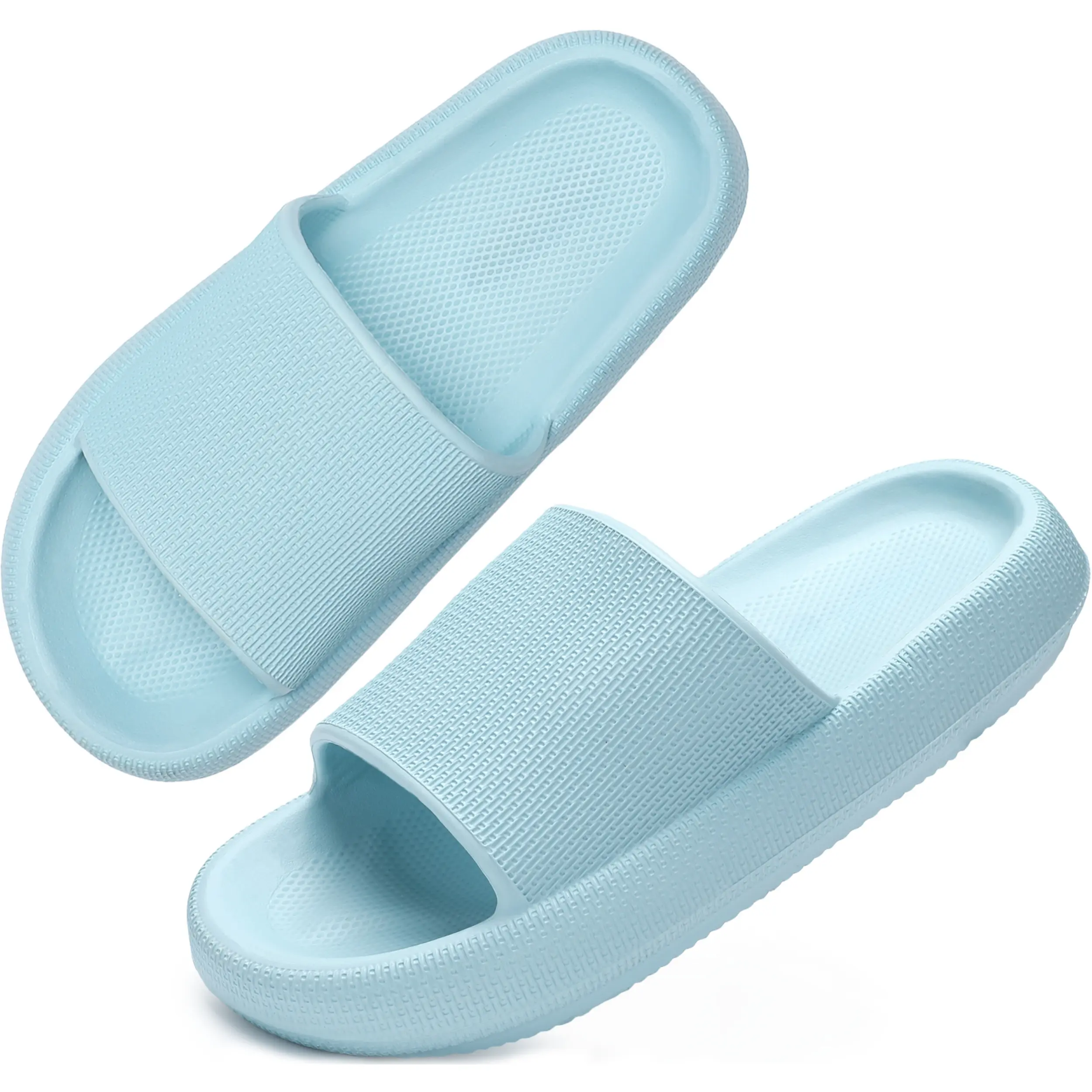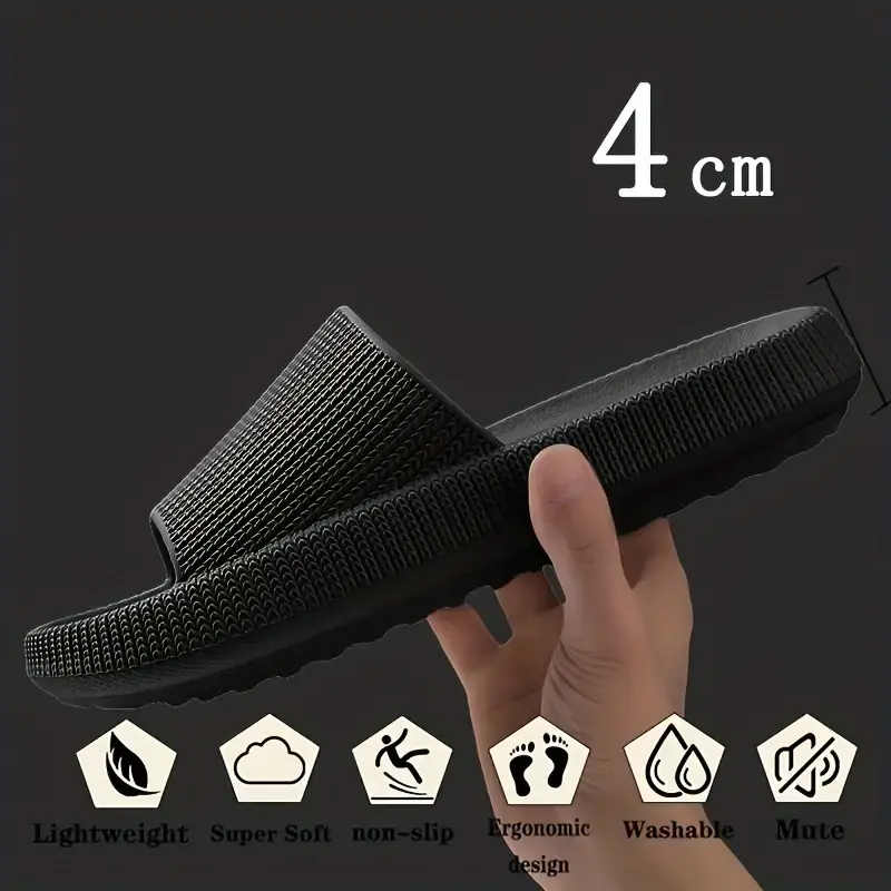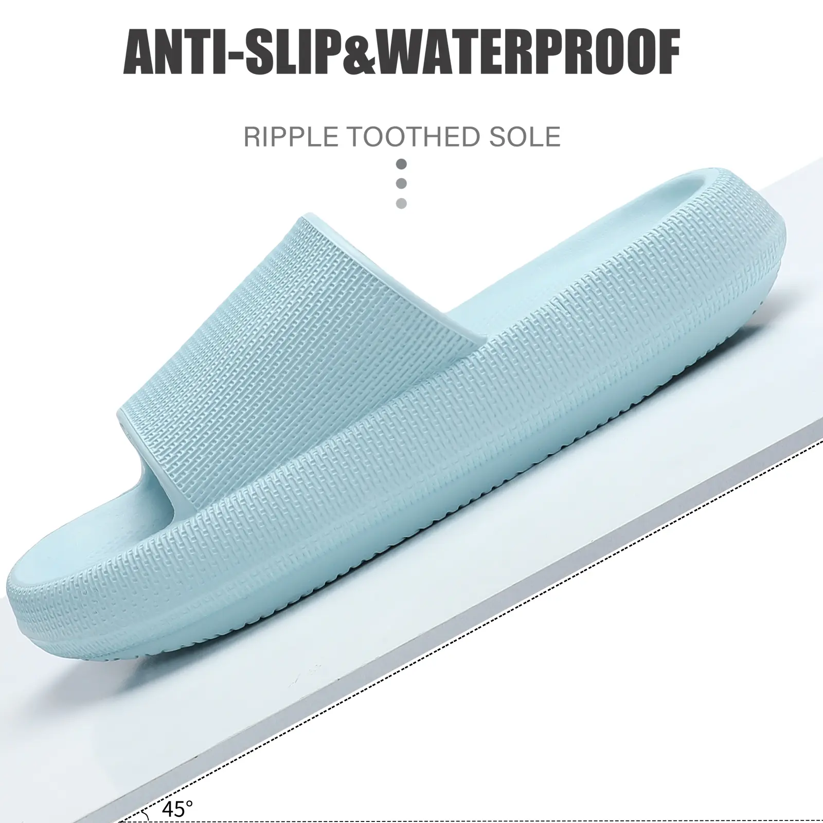 Cloud Slippers for Women and Men, Super Soft with Anti-Skid Sole. These ultra-comfortable, thick sole slides are perfect for indoor and outdoor use, providing ultimate comfort, support, and slip resistance. Ideal for lounging, beach trips, and showers.