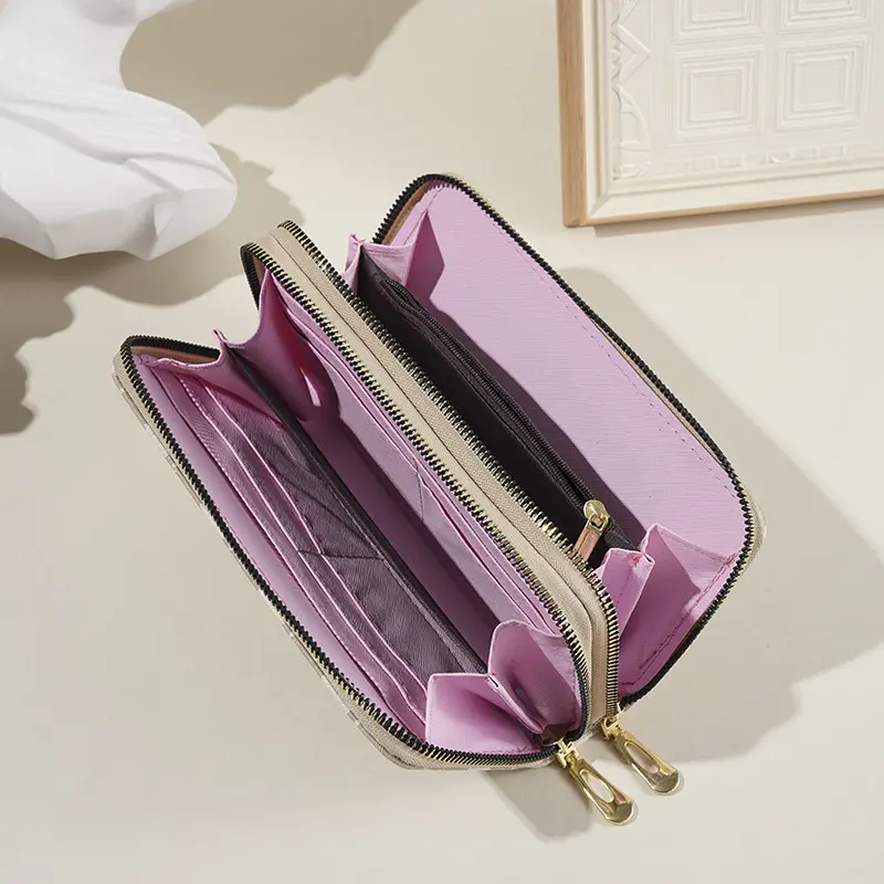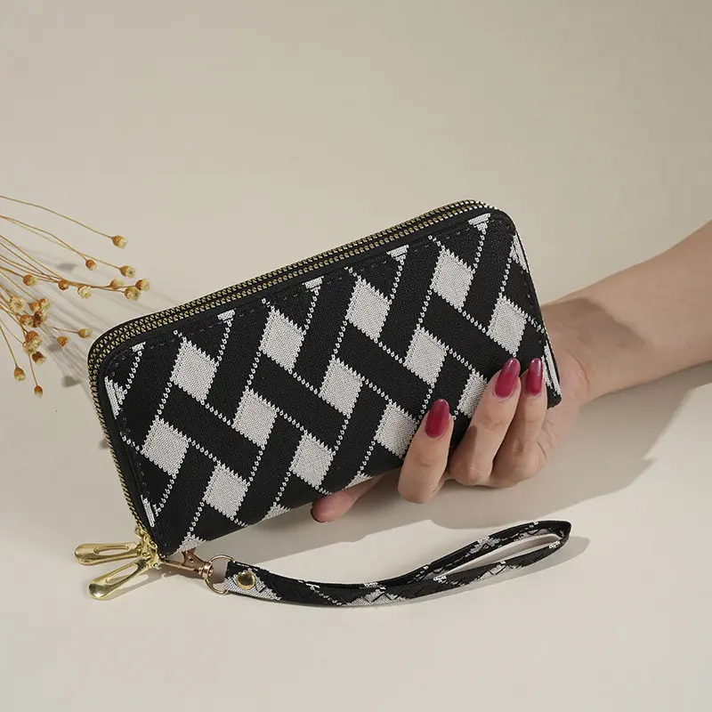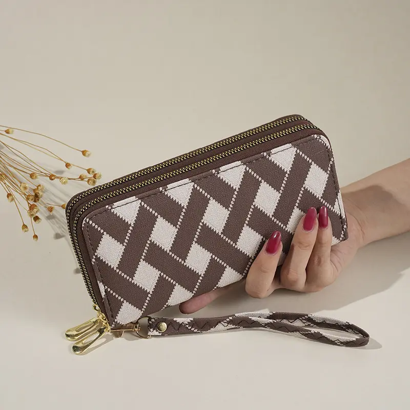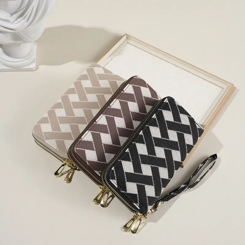 2026 New Women Wallet Korean Fashion Stripe Design Large Capacity Zipper Phone Purse with Multiple Card Slots and Coin Pocket