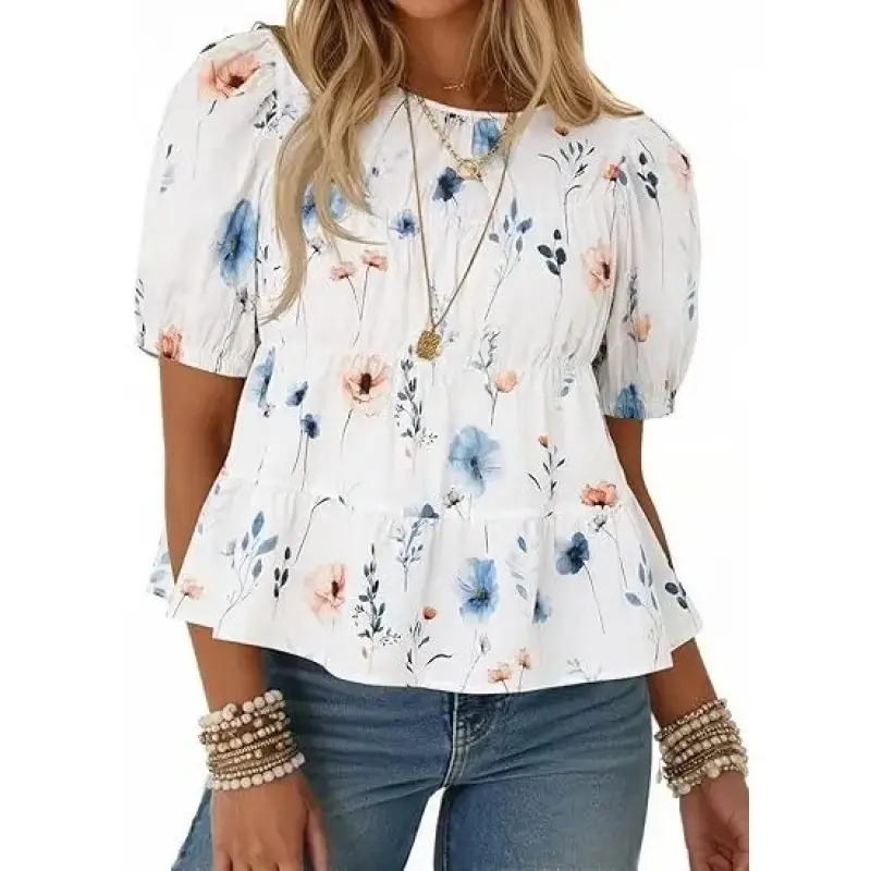 Stylish Design: Puff sleeves and babydoll blouse design add charm.Great for a picnic or coffee date