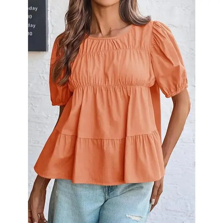 Fabric Feature: The womens puff sleeve babydoll tops are crafted from cotton, an eco friendly material.It's soft, breathable and comfortable, making it ideal for summer days while being kind to the environment