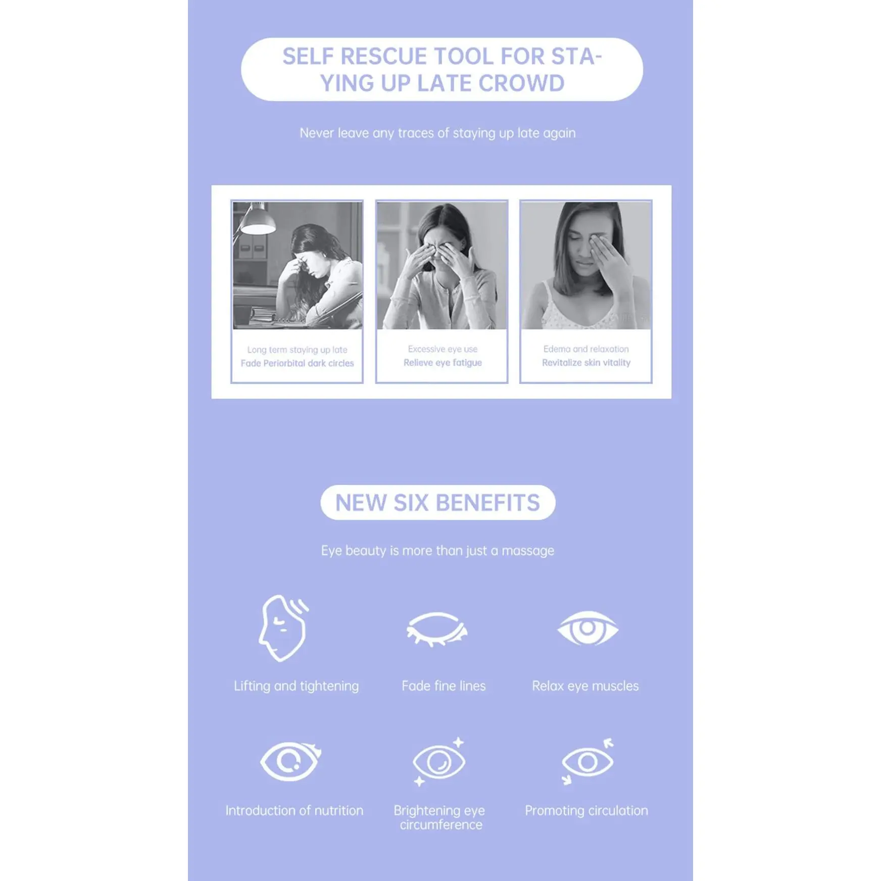 Micro-current Massage: Through special low-frequency micro-current, the deep muscles around the eyes are oscillated in 3 directions for exercise. Only 5 minutes of beauty-grade massage can relieve eye fatigue.