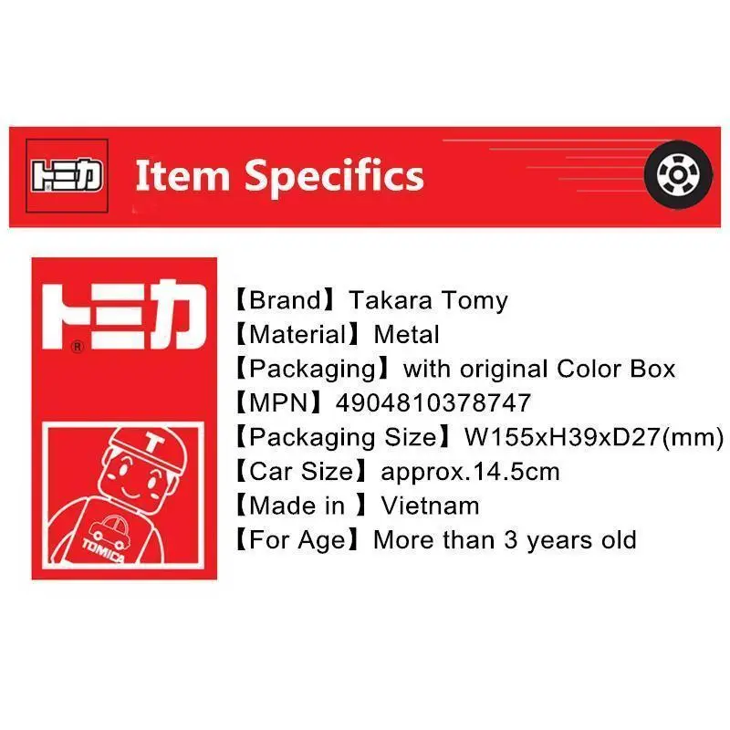 Item No .: 4904810378747 Manufacturer: TAKARATOMY Brand: Tomica Package size: W156 x H39 x D27mm Target age: 3 years old ~