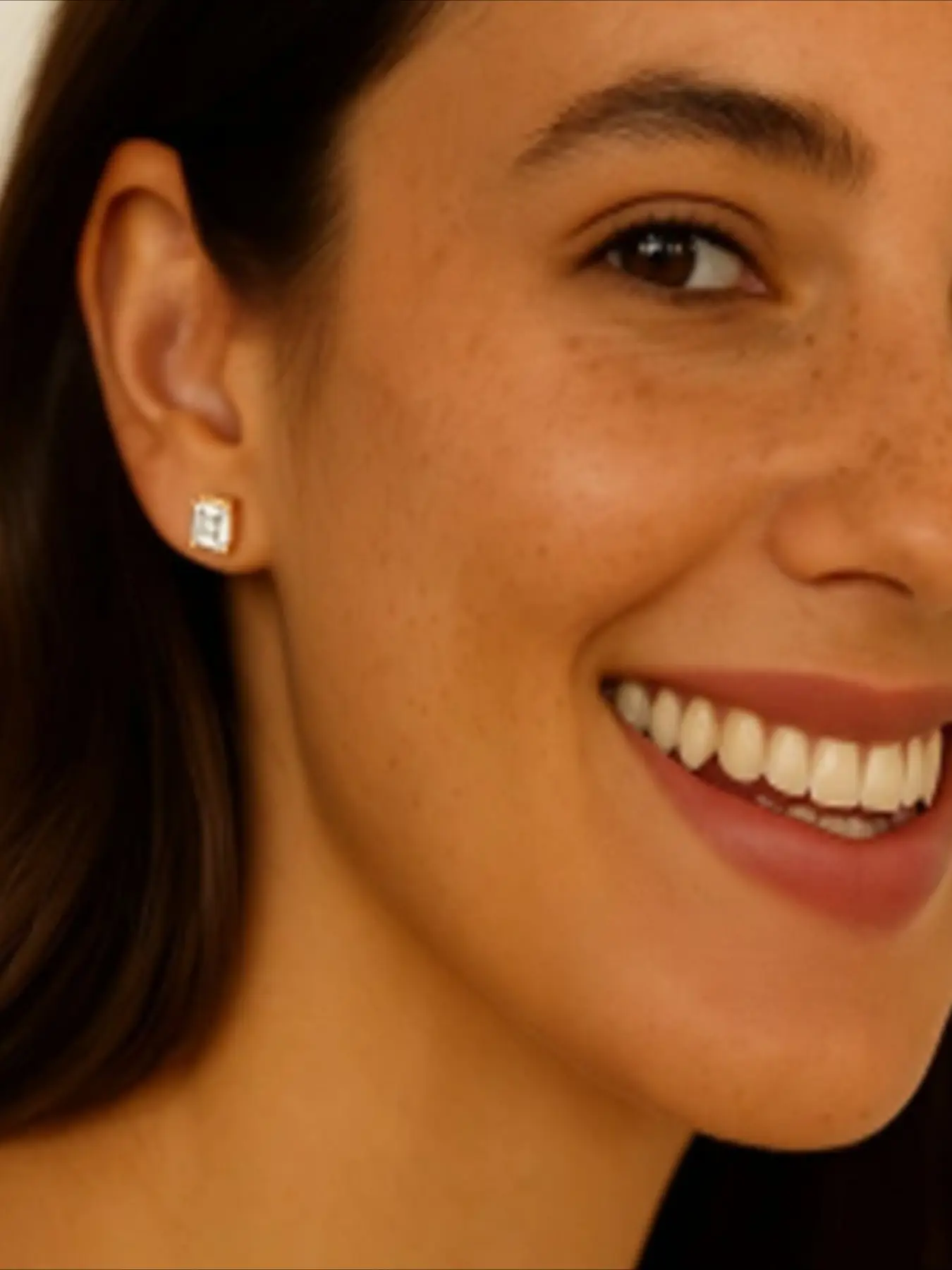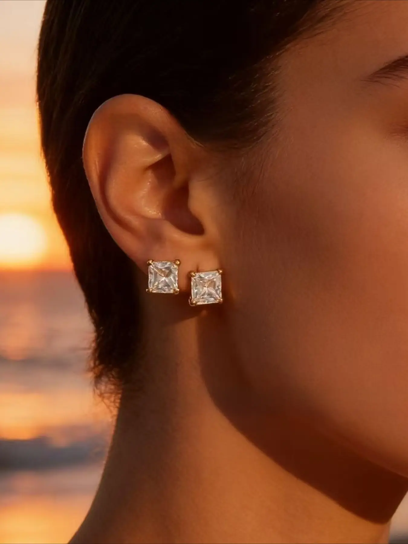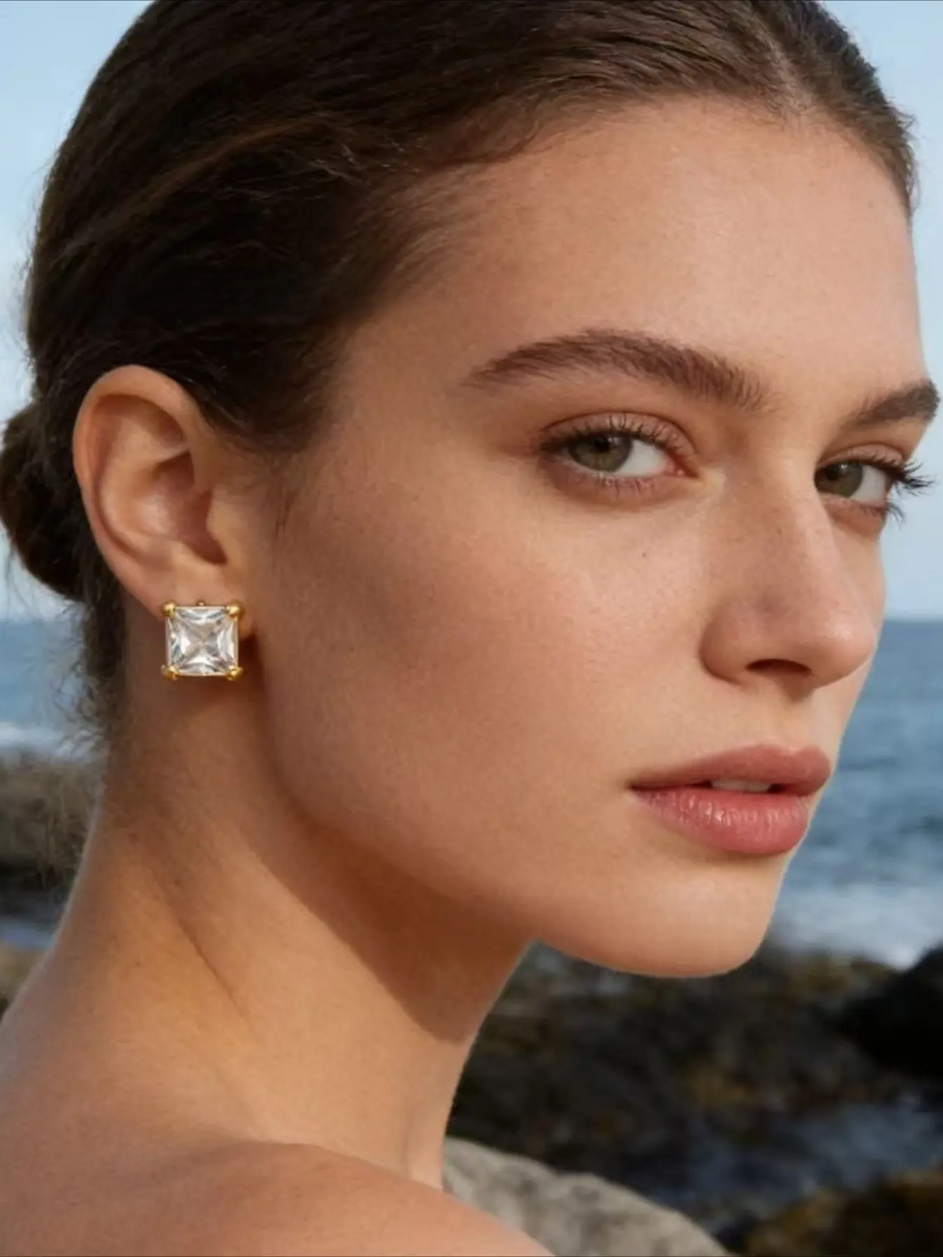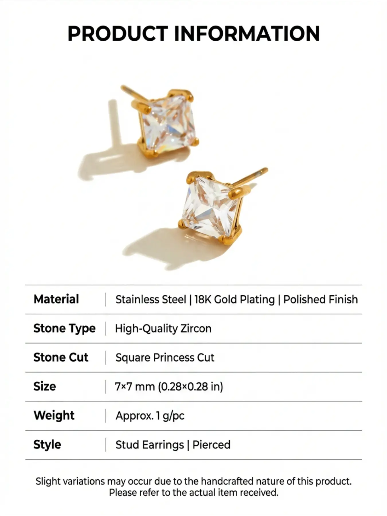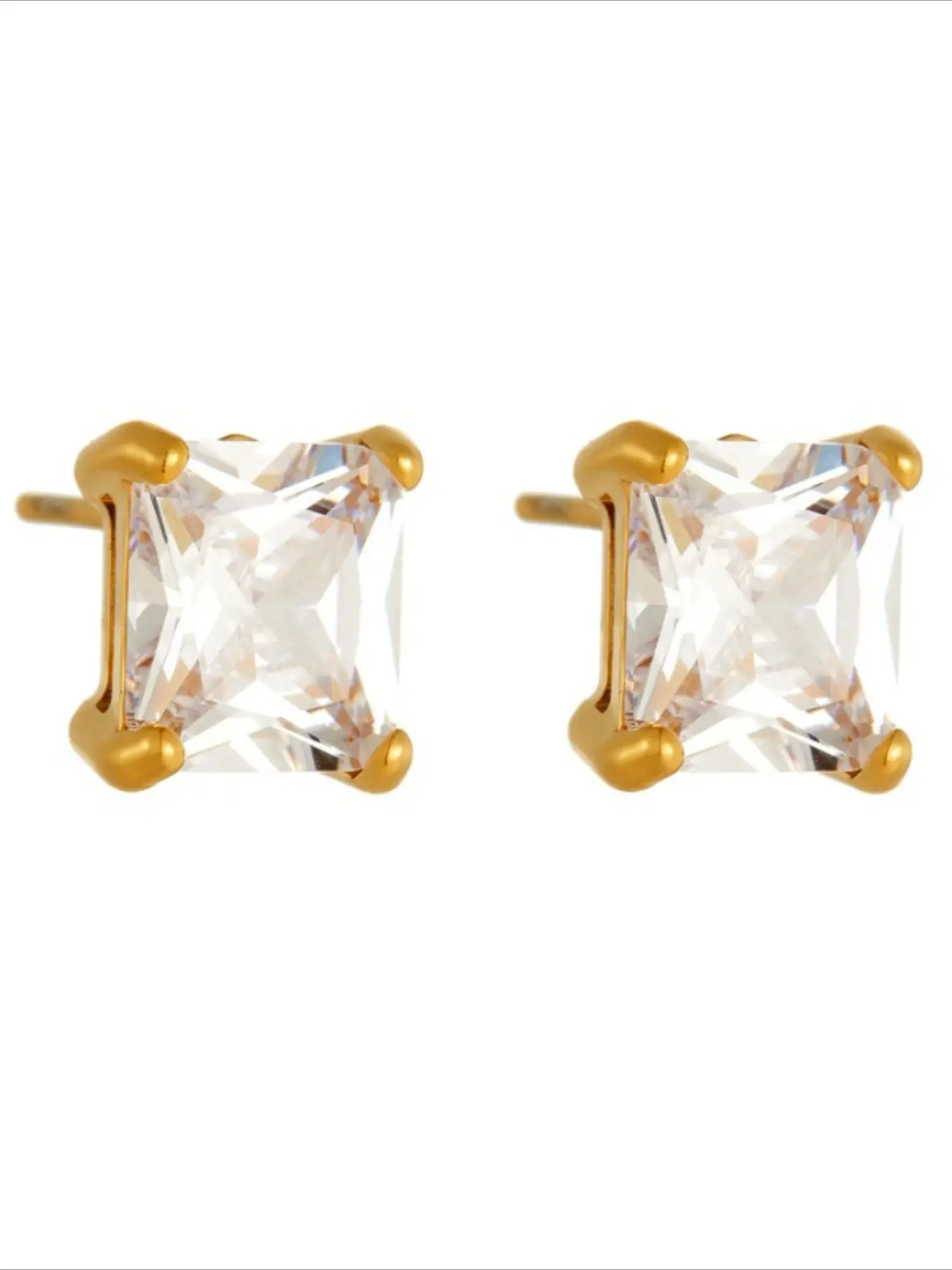 Stainless Steel Vacuum Plated 18K Zirconia Square Stud Earrings Small Sugar Cube Earrings Hypoallergenic Fashion Jewelry