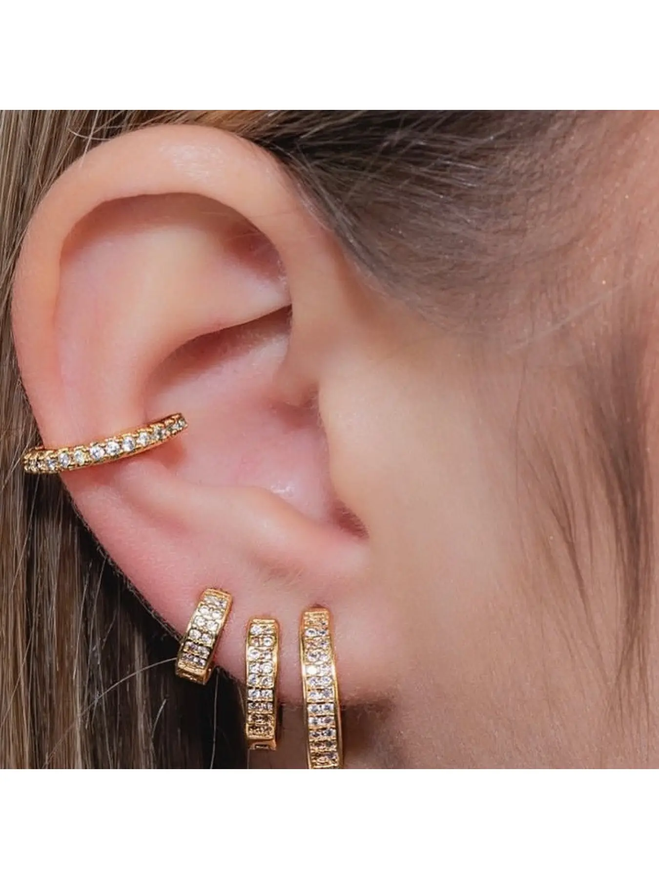 Super Flash double-row stud earrings with a unique design. A gift for your girlfriend featuring earlobes and earclips.