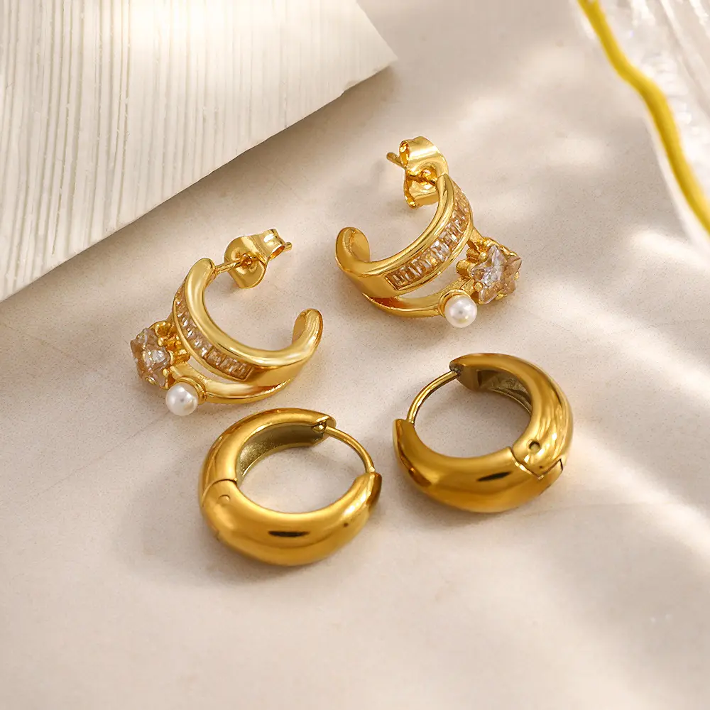 Stylish Titanium Steel C-Shaped Hoop Earrings, 18K Gold Plated, Inlaid Zircon, Trendy & Versatile Design, Tarnish & Water Resistant, Perfect Birthday & Holiday Gift for Her