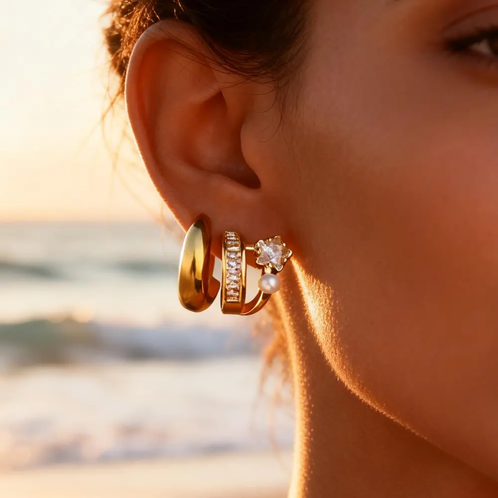 PAVOI Waterproof Five Pairs Stud Earrings Set for Women - 14K Gold Plated Stainless Steel 5 Earrings Pack - Hypoallergenic Premium Cubic Zirconia Studs