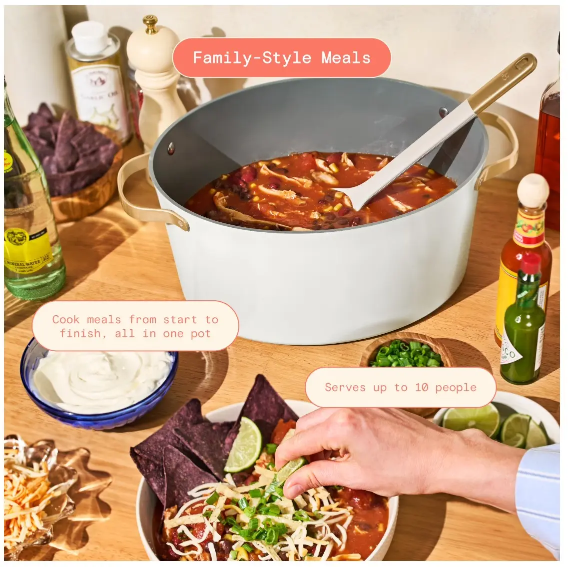 The 8qt Multi-Cooker with Bamboo Steamer Insert by replaces 10 kitchen tools in one sleek design that looks as good on your table as it does on your counter. With 7 smart preset functions—Sear/Sauté, Slow Cook, Braise, Steam, Rice, Simmer, and Keep Warm—it’s your new go-to for everything from cozy soups to crispy potstickers. The 4-piece set includes a removable cooking pot, oven-safe glass lid, a touch-activated digital display, and a bamboo steamer tray for fresh vegetables or dumplings. Lightweight cast aluminum makes the pot easy to maneuver, and the stainless-steel handles are as durable as they are stylish. Finished with our exclusive Evergood Ceramic Nonstick Coating because what you cook in matters just as much as what you cook. by brings together contemporary design, high-performance features & thoughtful innovation—so you can focus on what matters most: making something .