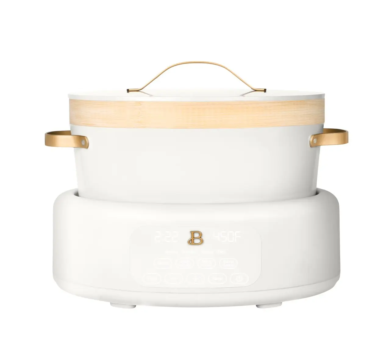 5. 10-in-1, 8 Qt Multi-Cooker with Bamboo Steamer Insert and 7 Preset Functions, White