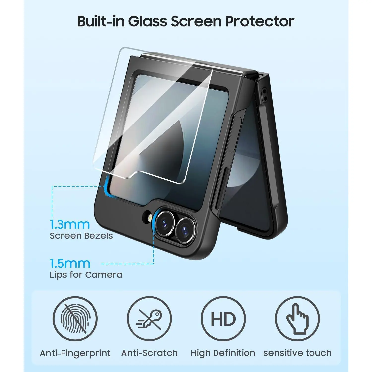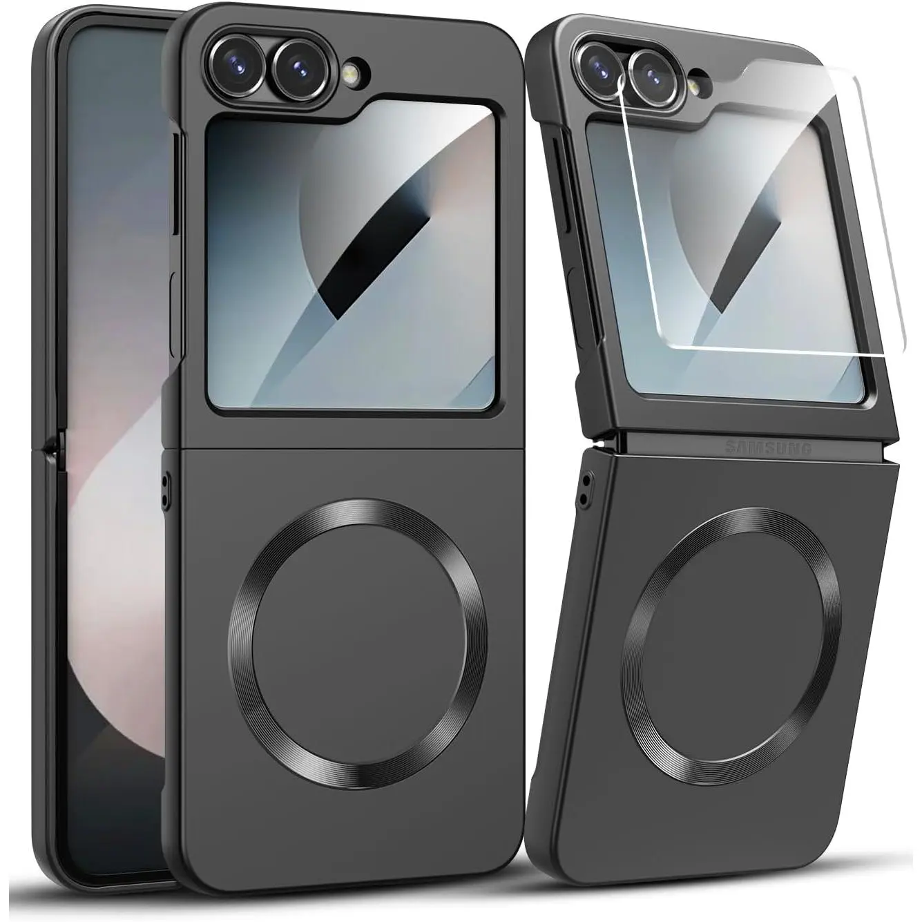 THE WELL KEPT for Galaxy Z Flip 6 Case, Flip 7 FE Case Compatible with MagSafe, with Built-in Screen Protector, Flip6 Slim Hard Phone Case, Black
