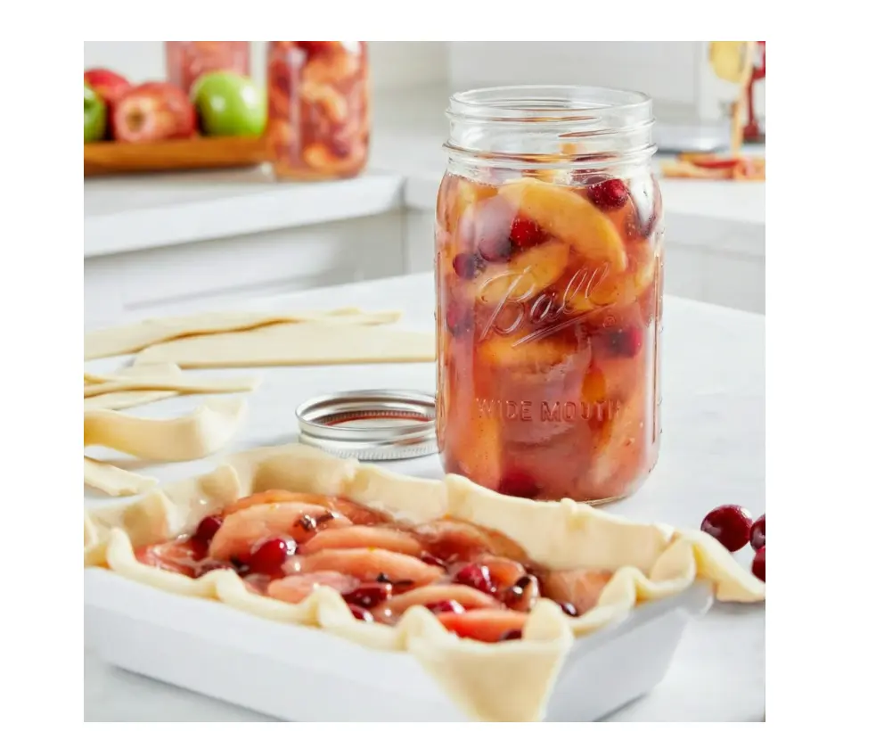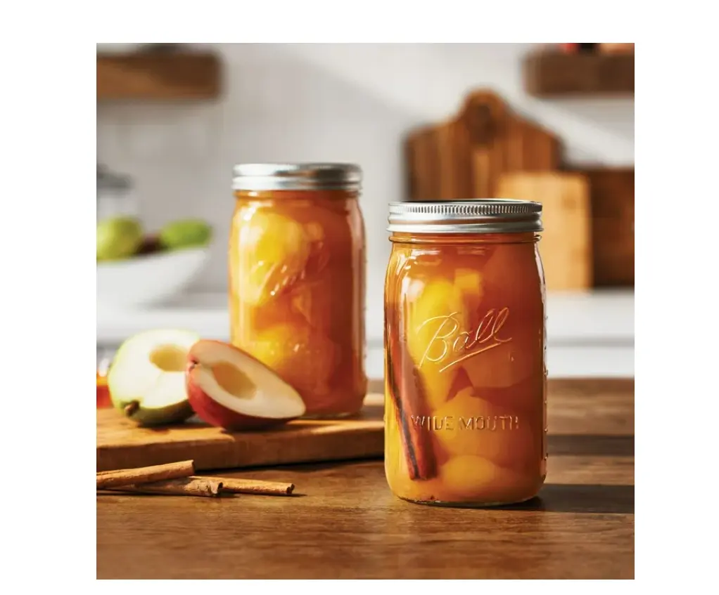 Featuring a classic design that offers ideal versatility for canning and crafting projects, Ball Wide Mouth glass Mason jars help capture your creativity. These Mason jars with lids have a timeless design that moves effortlessly from the panty to the table, and are great for preserving fresh recipes such as salsas, syrups, sauces, fruits, and vegetables. In addition to preserving, these Wide Mouth Mason jars are also great for serving, creative decor, and gift giving. The included lids and bands create airtight seals while canning to keep your creations fresh and delicious.