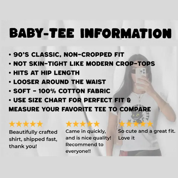 Not to be confused with the modern crop top, the 90s baby t-shirt is a shrunken t-shirt that emerged from the skater/raver era of the 90s.