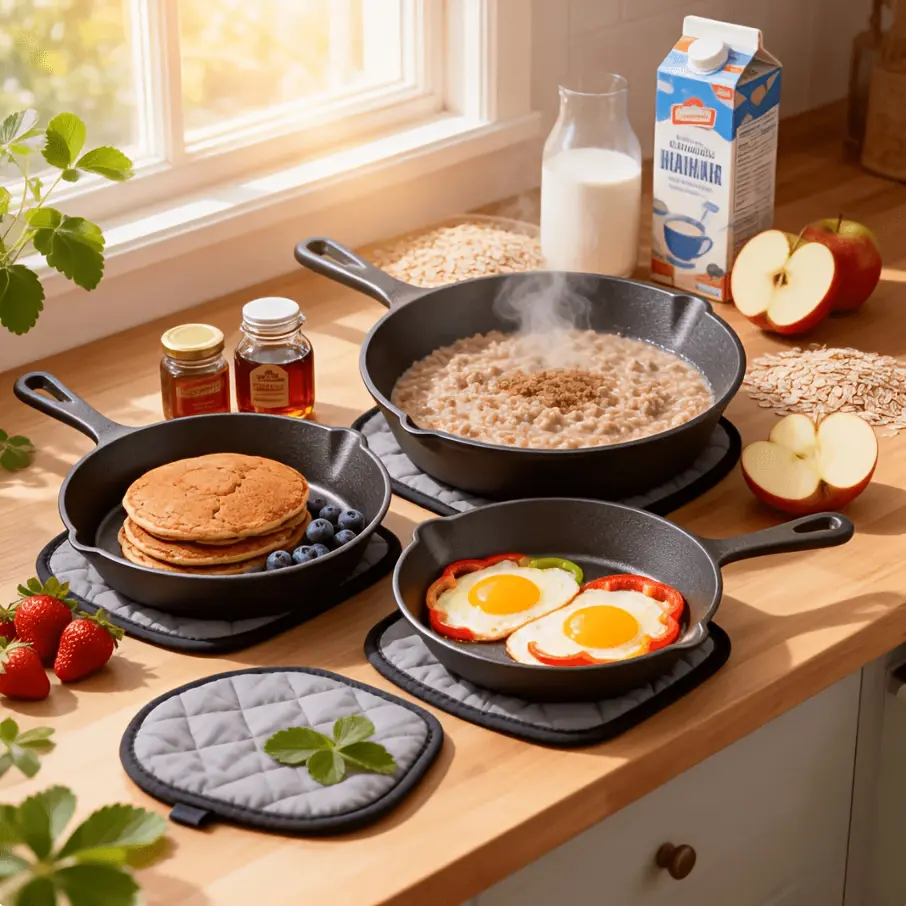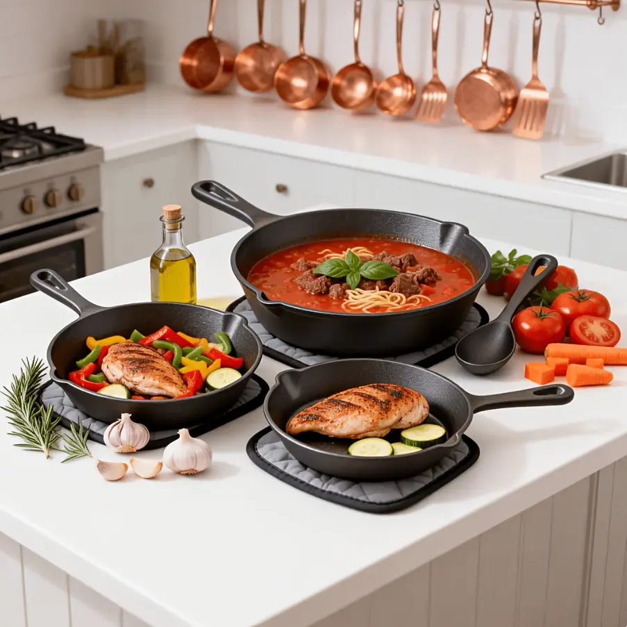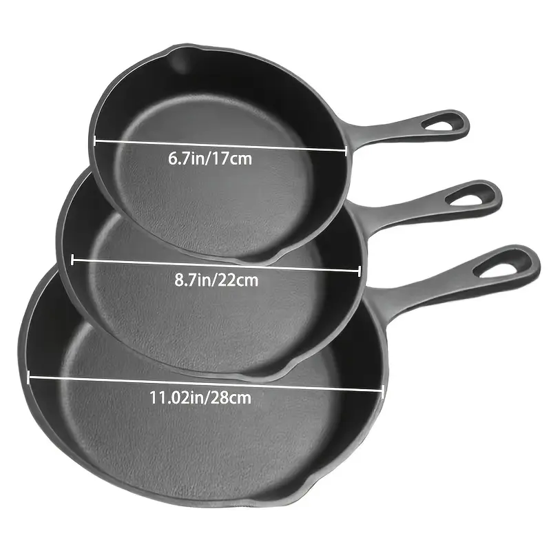3PCS Cast Iron Skillet Set – Even Heat Cooking for Everyday Use