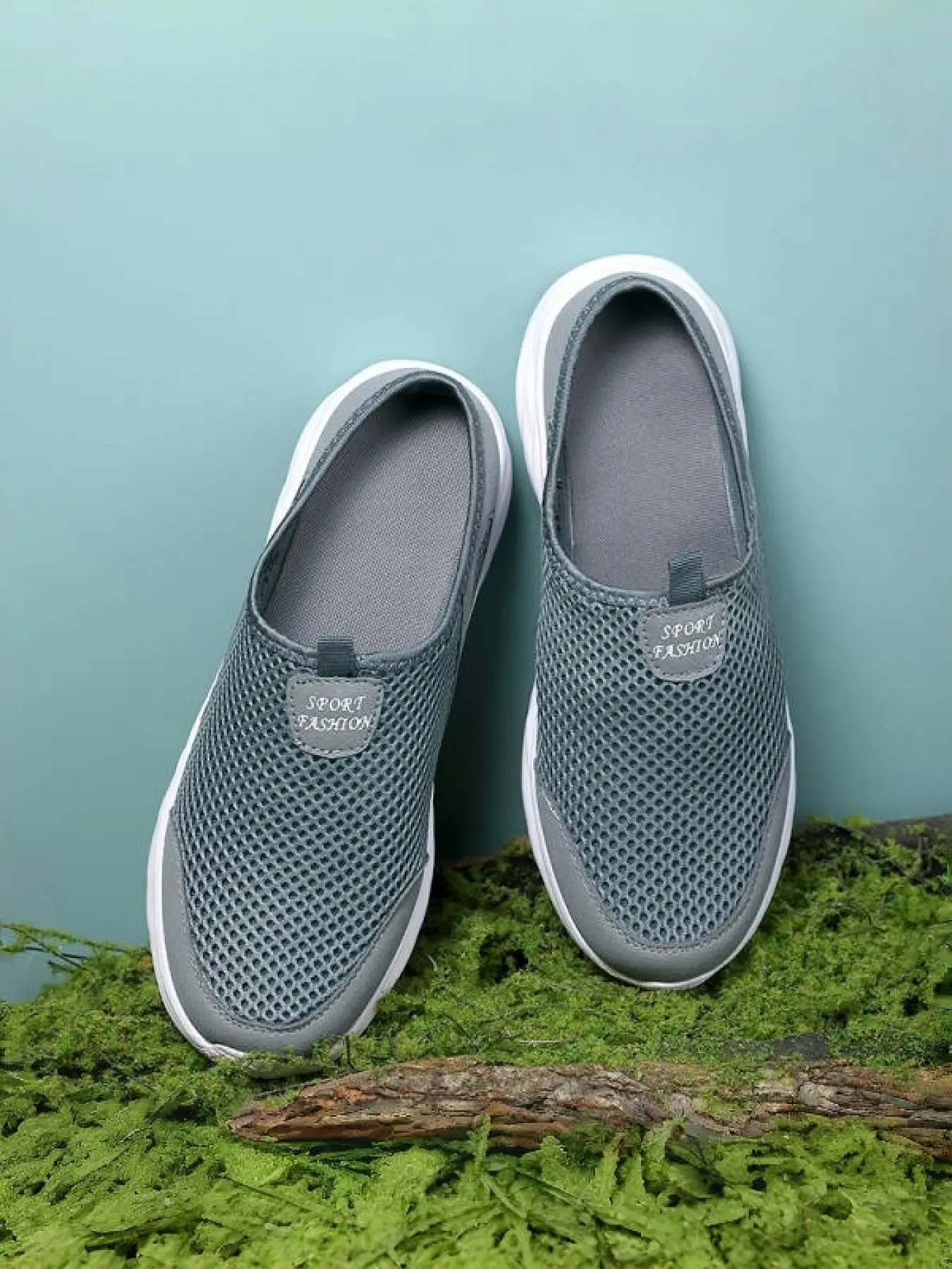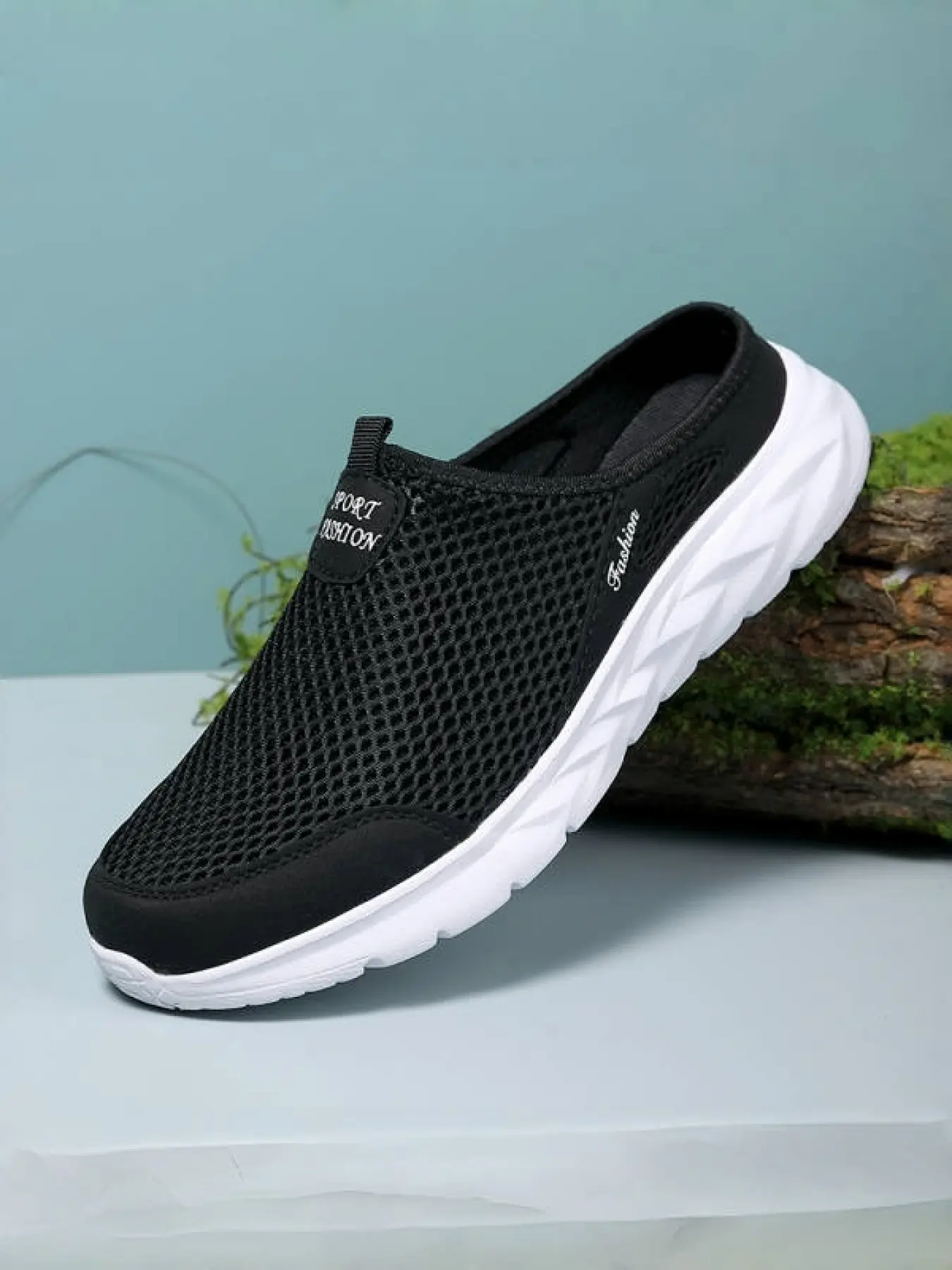 Men's Gray-White Color-Block Mesh Closed-Toe Slippers: Breathable Mesh + Lightweight Rebound, Indoor & Outdoor Dual-Use Sandals