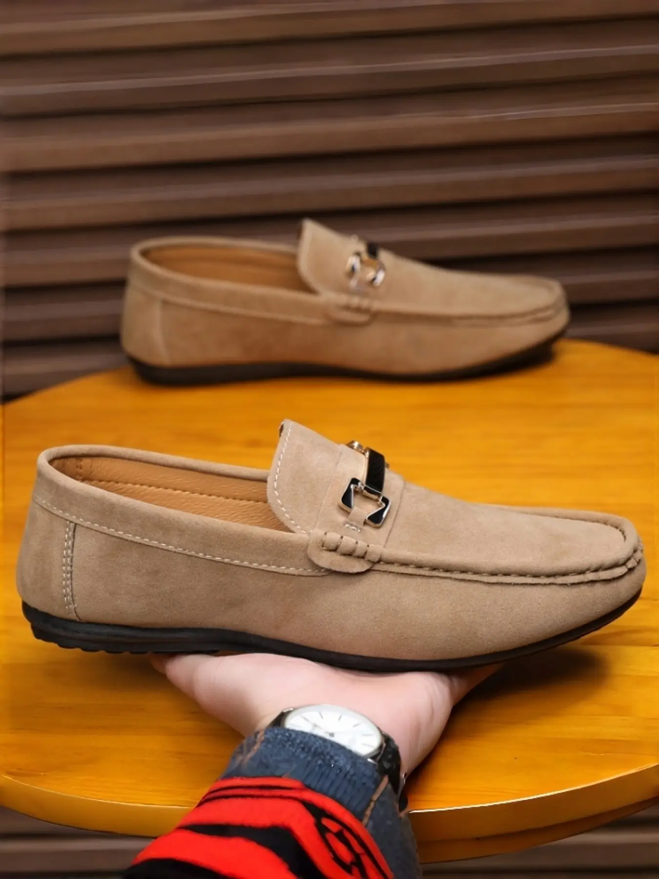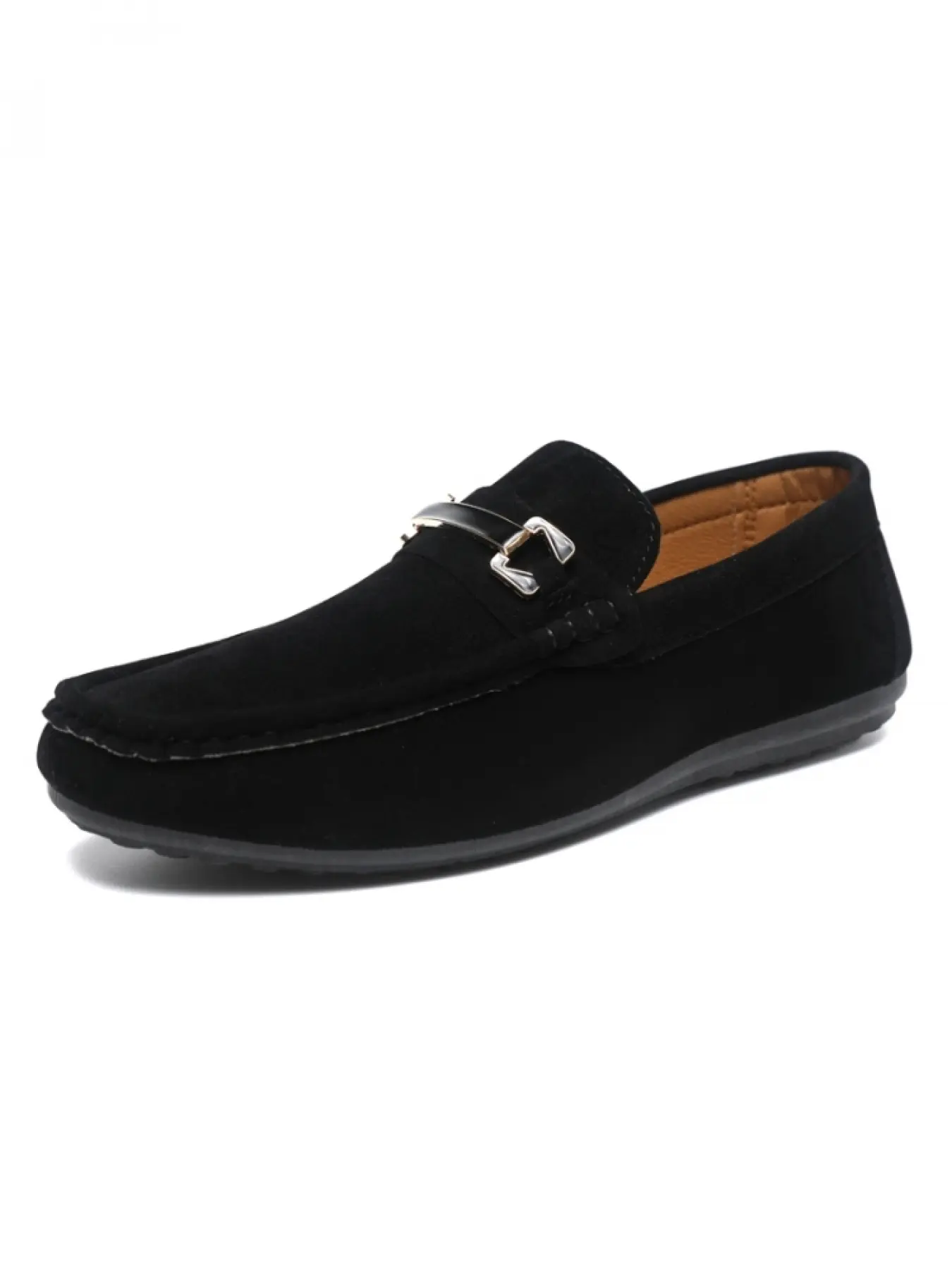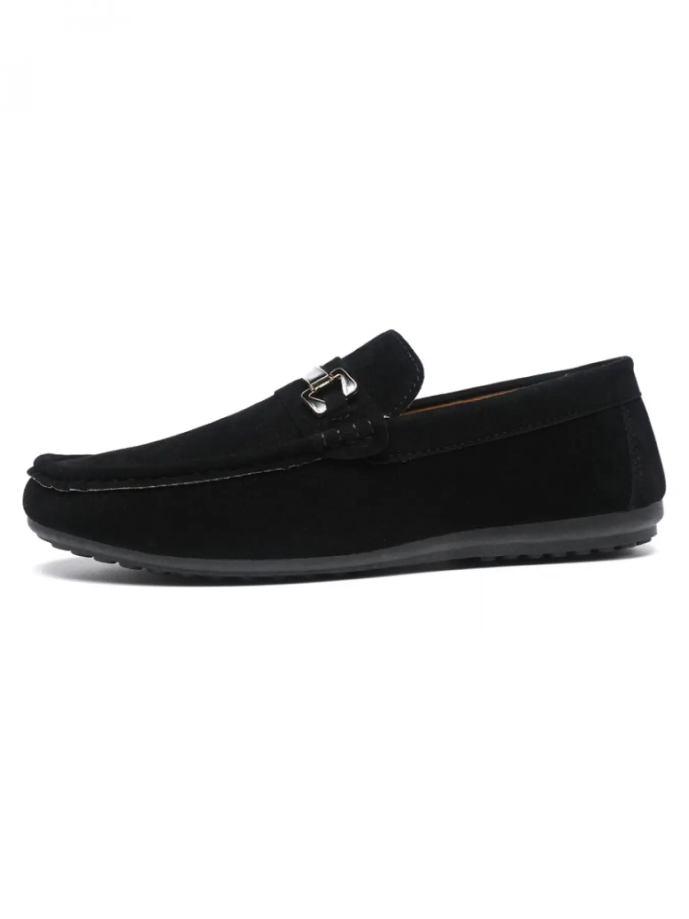Men's Khaki Suede Metal Buckle Loafers: Soft-Sole Anti-Slip + Slip-On Design, Daily Commute Versatile Casual Shoes