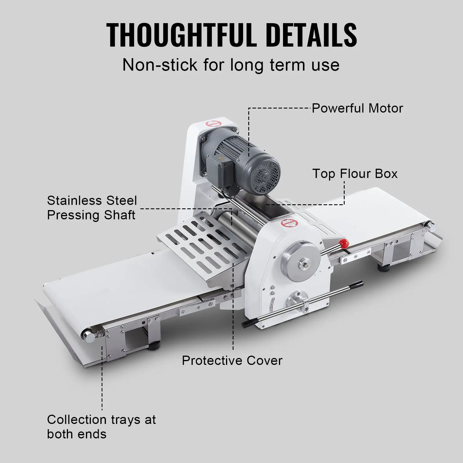 VEVOR Commercial Dough Sheeter Machine, 15.7-Inch Reversible Puff Pastry Sheeter and Fondant Roller, Electric Dough Roller 0-1.4 Adjustable Thickness, Folding Dough Sheeter for Bakeries, Pastries