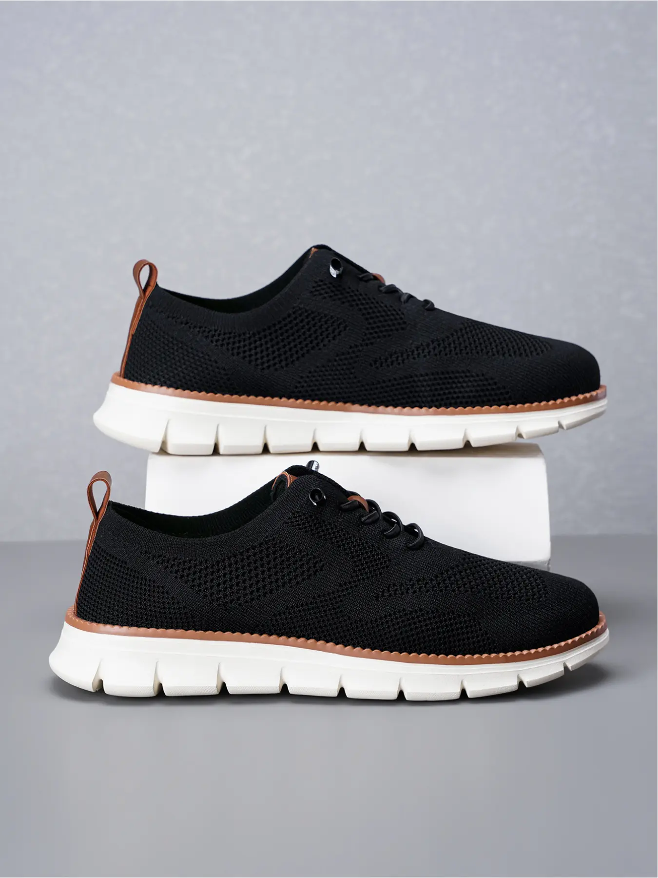 Men's Black Flyknit Mesh Breathable Platform Casual Shoes: Lightweight Soft-Sole + Anti-Slip Wear-Resistant, Daily Commute Versatile Shoes