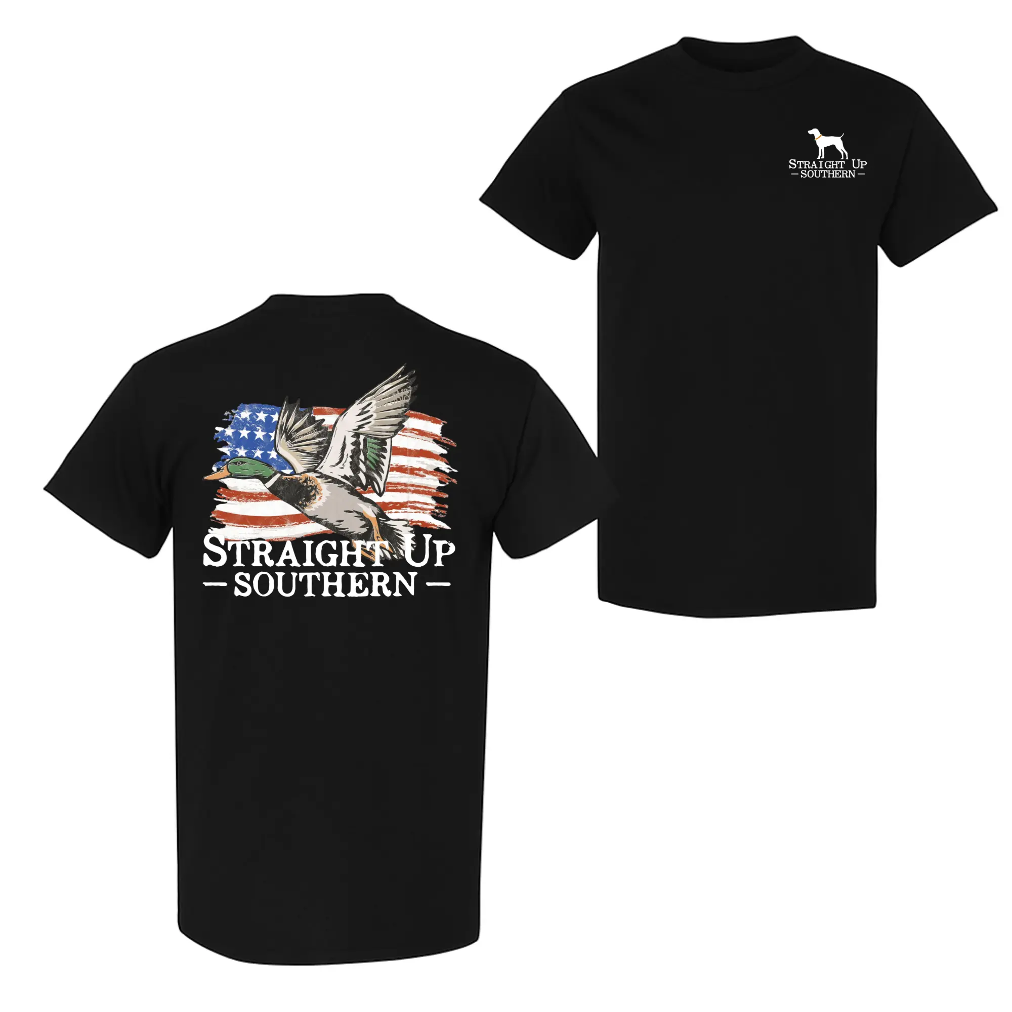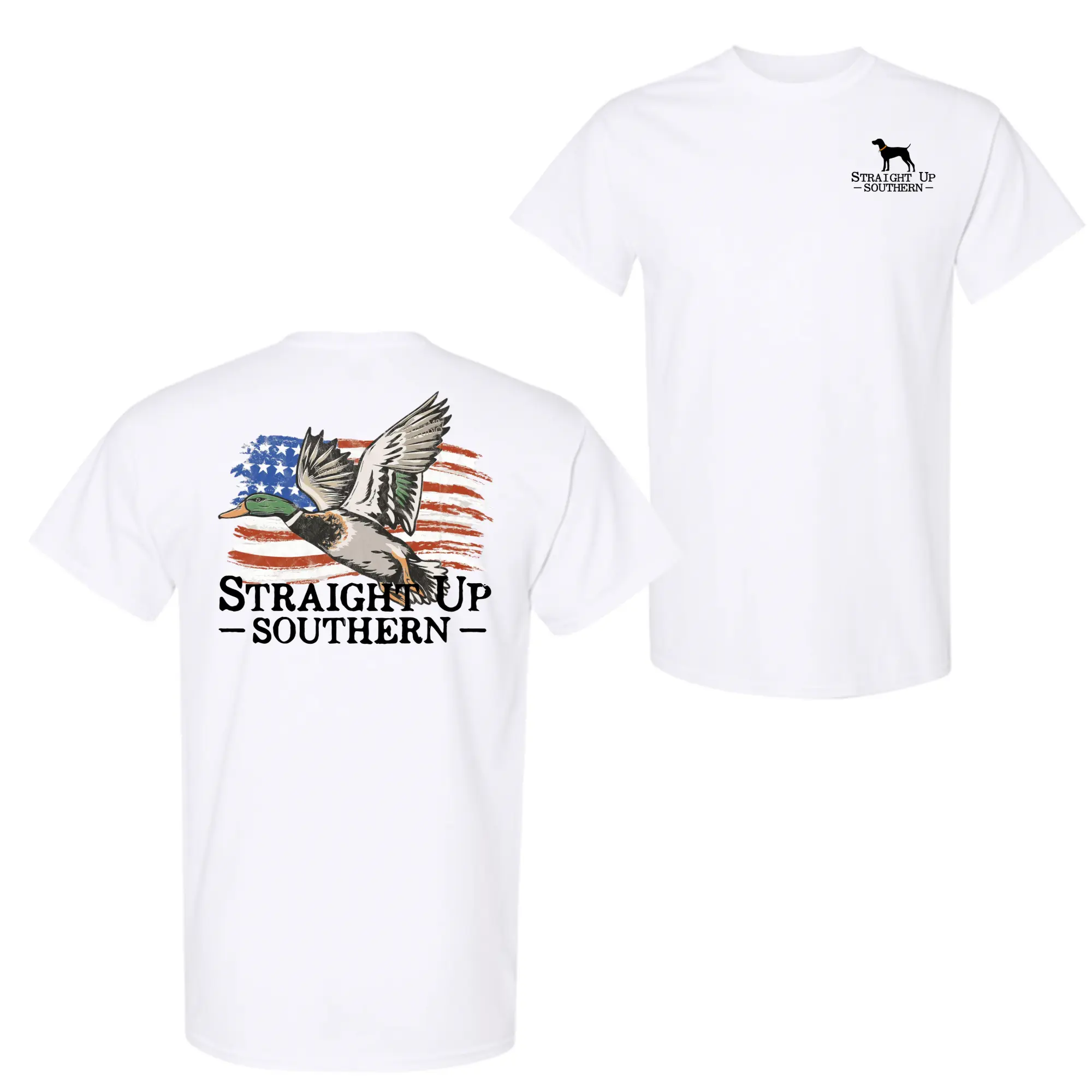 🦆 Duck Hunting Patriotic Shirt – Flying Duck American Flag Graphic Tee 🇺🇸