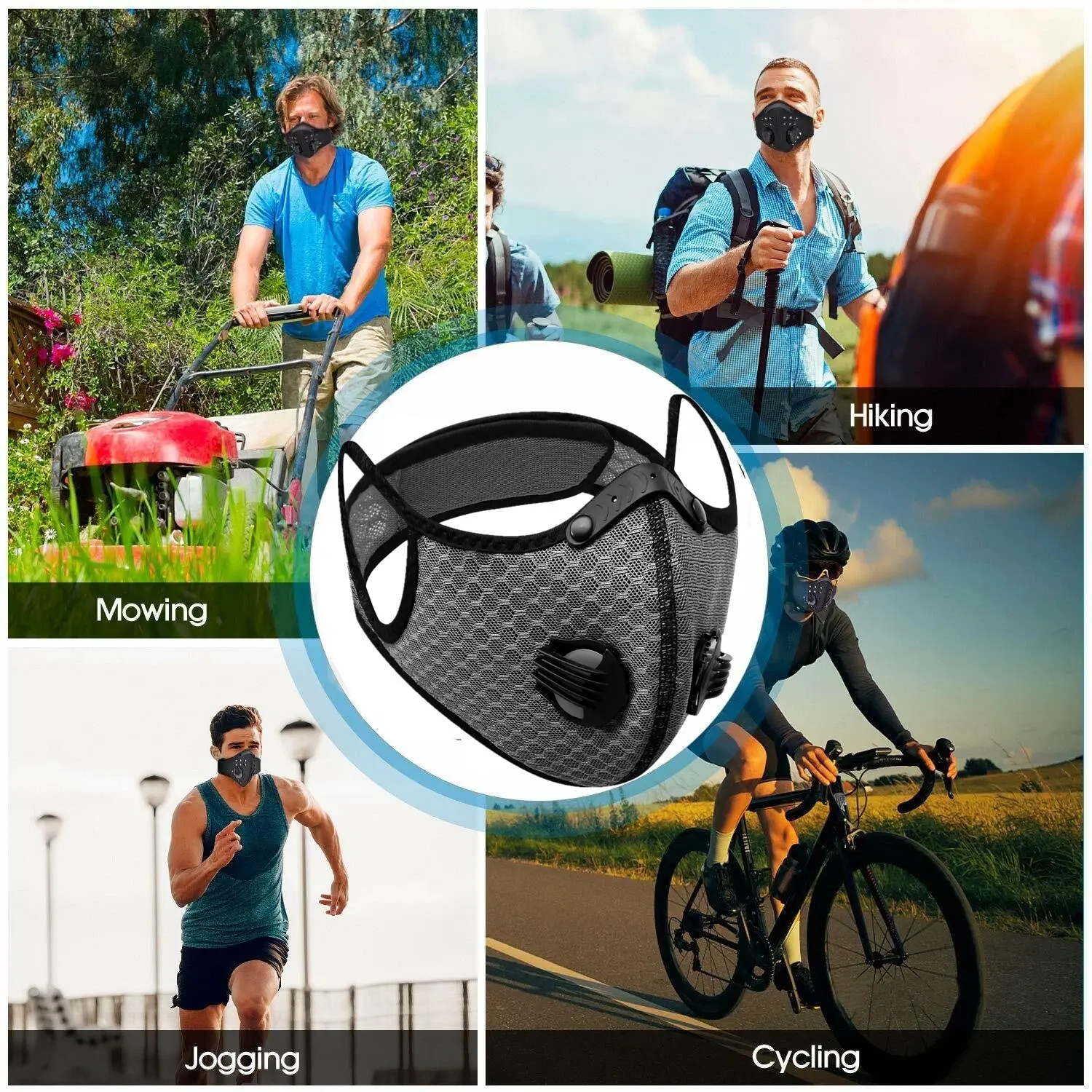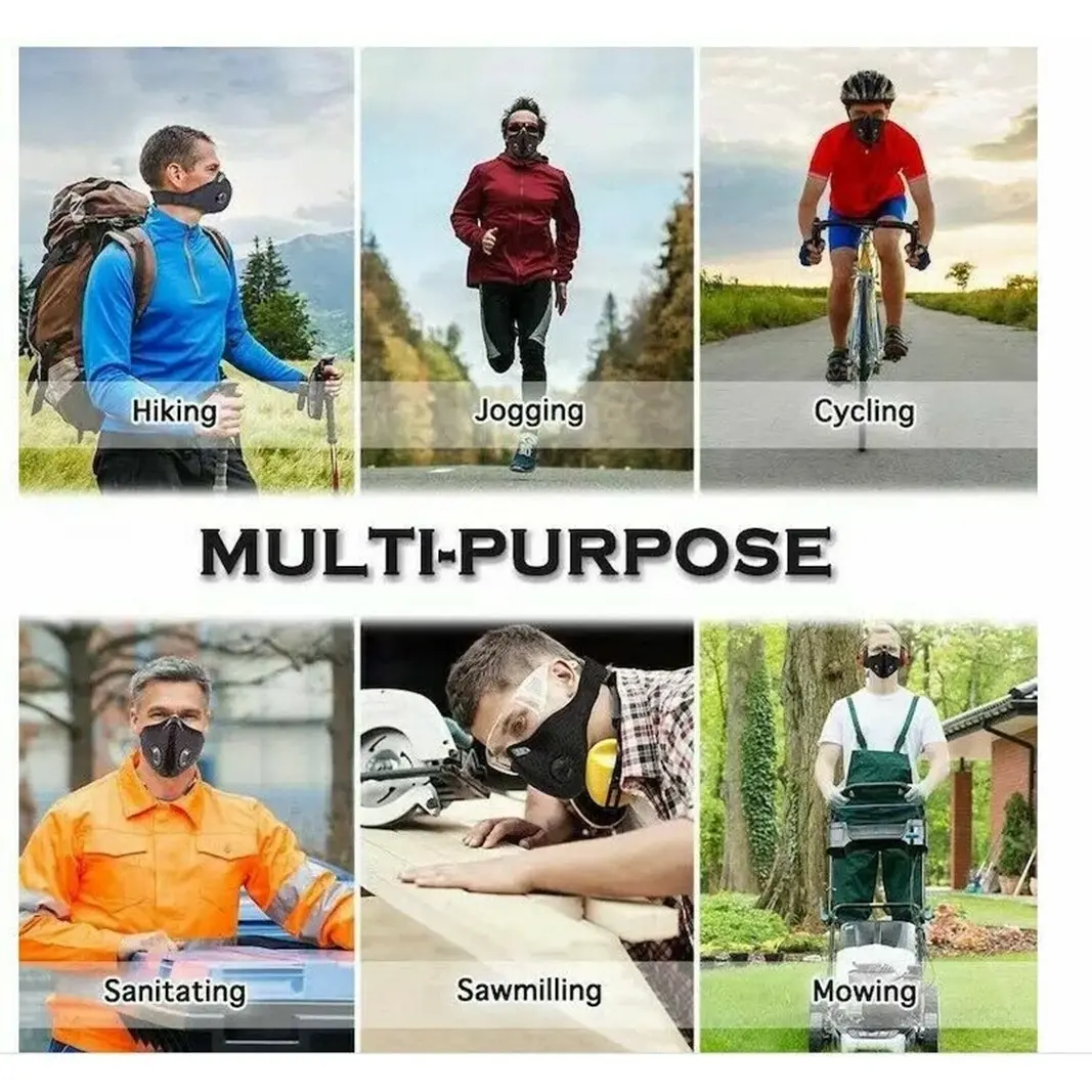 Filter layers: 2x Waterproof nonwoven polypropylene, anti-odor activated carbon, cotton prefilter, and electrostatic meltblown cotton submicron filter. Department: Unisex Adults Net weight: 1.5 ounces (43 g) for one mask and filter. Size: One size fits all with hoop & loop tape to adjust the fitness. Size: 14” length by 6” height. Velcro strap circumference of 28” (26" without stretching). Comfortably fits 20" to 25” head circumferences. Suitable for cycling, climbing, running, outdoor sports, etc.