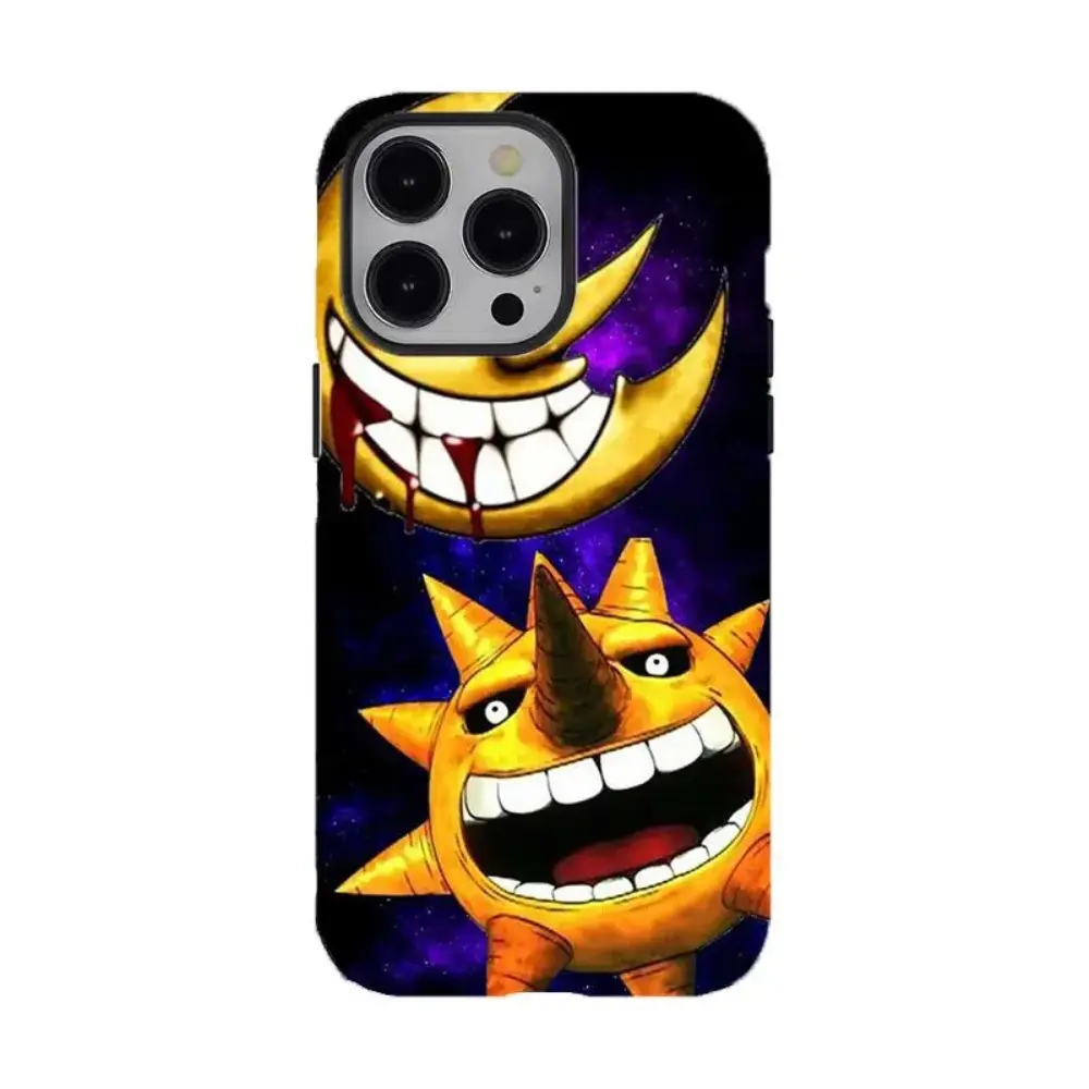 This phone case features a sun and moon print, perfect for iPhone 17-11 and Samsung S25-21. It combines shabby chic gingerbread and vintage Santa Claus designs with a pink truck motif. Ideal for those who love unique, retro aesthetics.