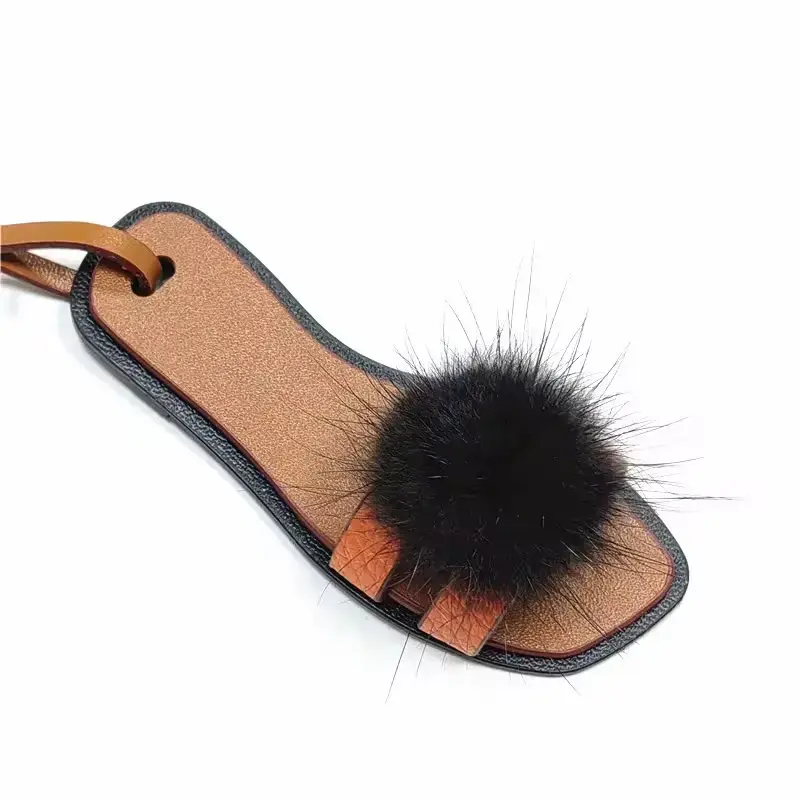 Sandal Pu Bag Charm Accessories - Elegant Unique Design for Versatile Styling with Black Pom Pom - Perfect for Various Occasions