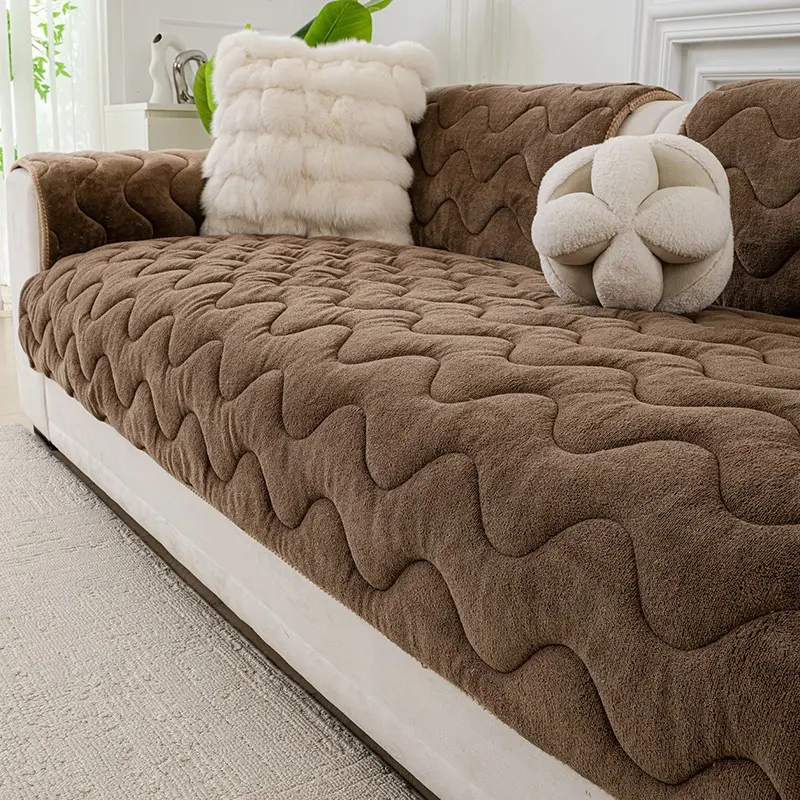 1pc Fluffy Couch Cushion, Pet-Friendly for All Seasons, Full Armrest Cover for Home Protection, Slip-Resistant and Machine Washable, Suitable for Single, Double, Triple, and Other Combination Sofas