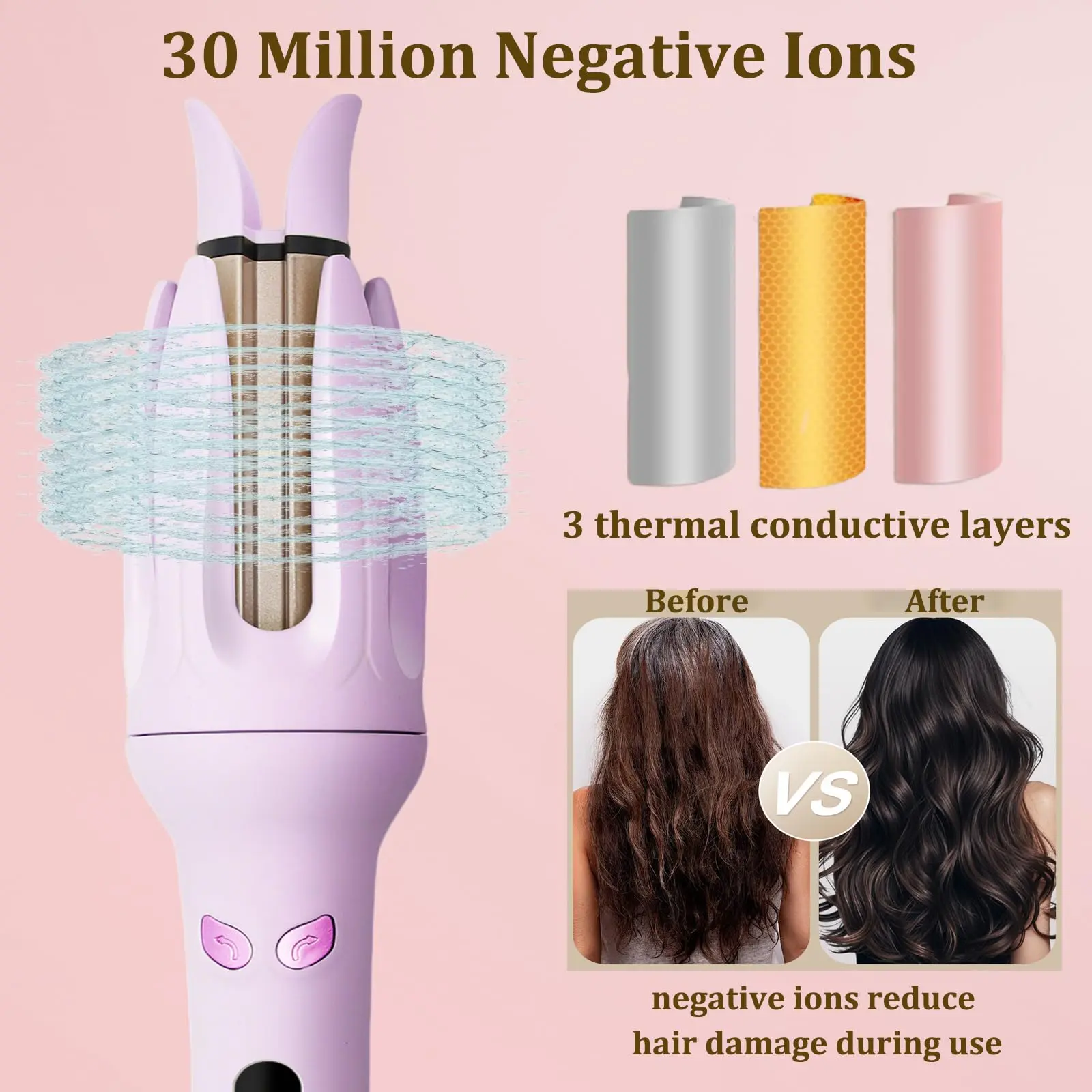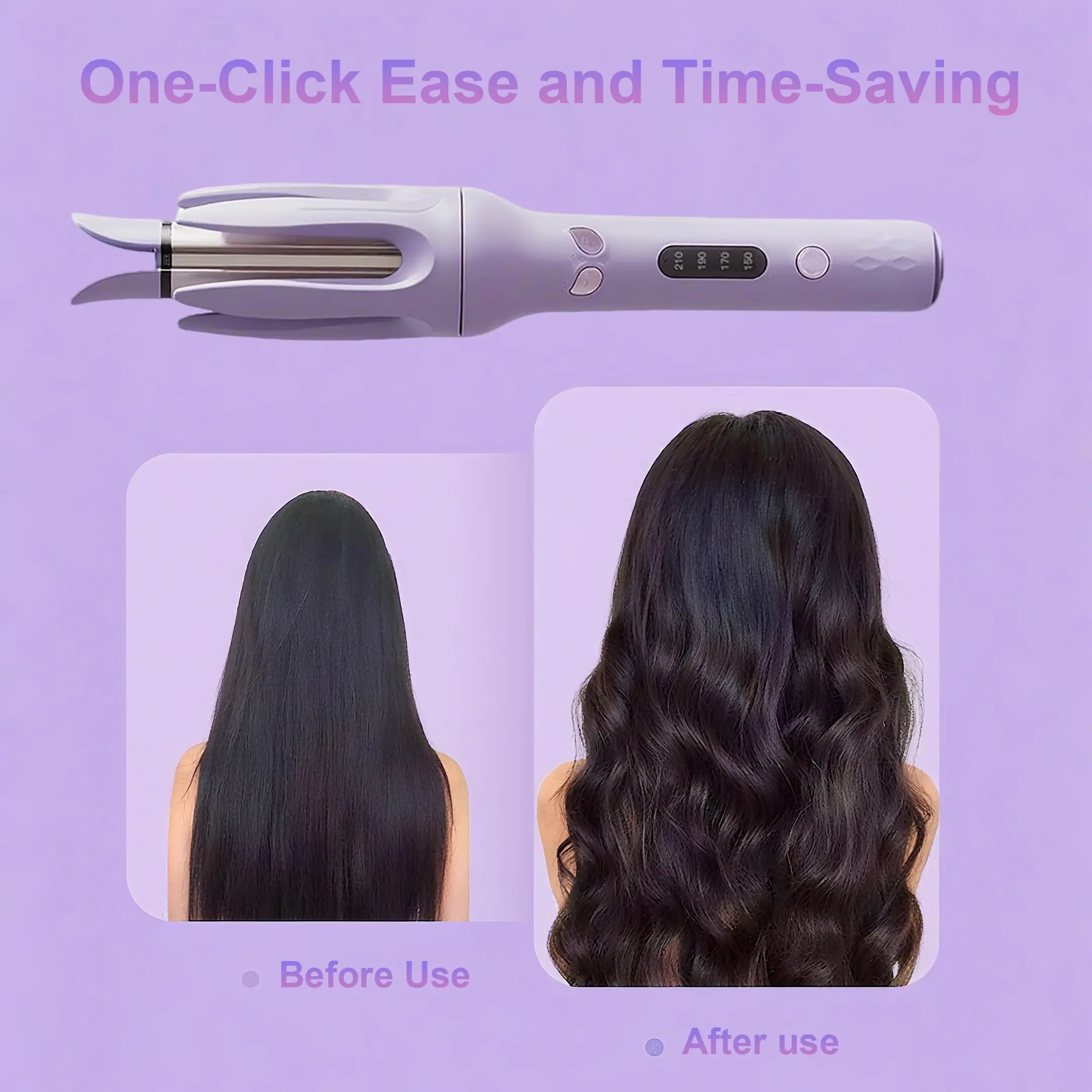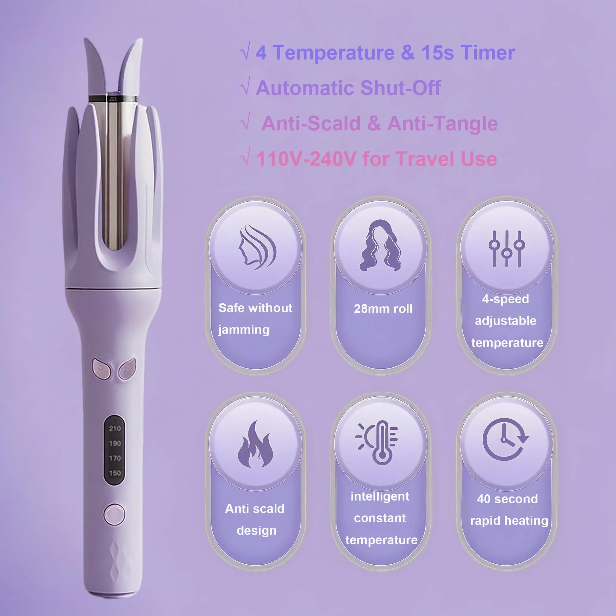 Anti-Scald & Anti-Tangle: This rotating curling iron features a cool-touch 360°anti-scald design, making it safe even for beginners.Its smart anti-tangle mechanism detects and quickly resolves knots, ensuring a smooth styling experience.This hair curling iron also features a 30-minute automatic shut-off function to prevent fires and protect your life and property.