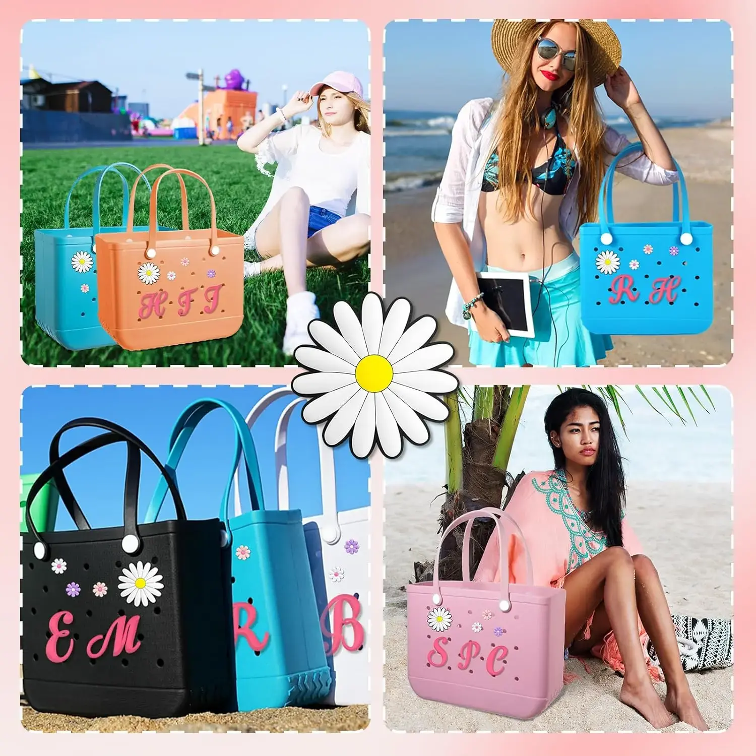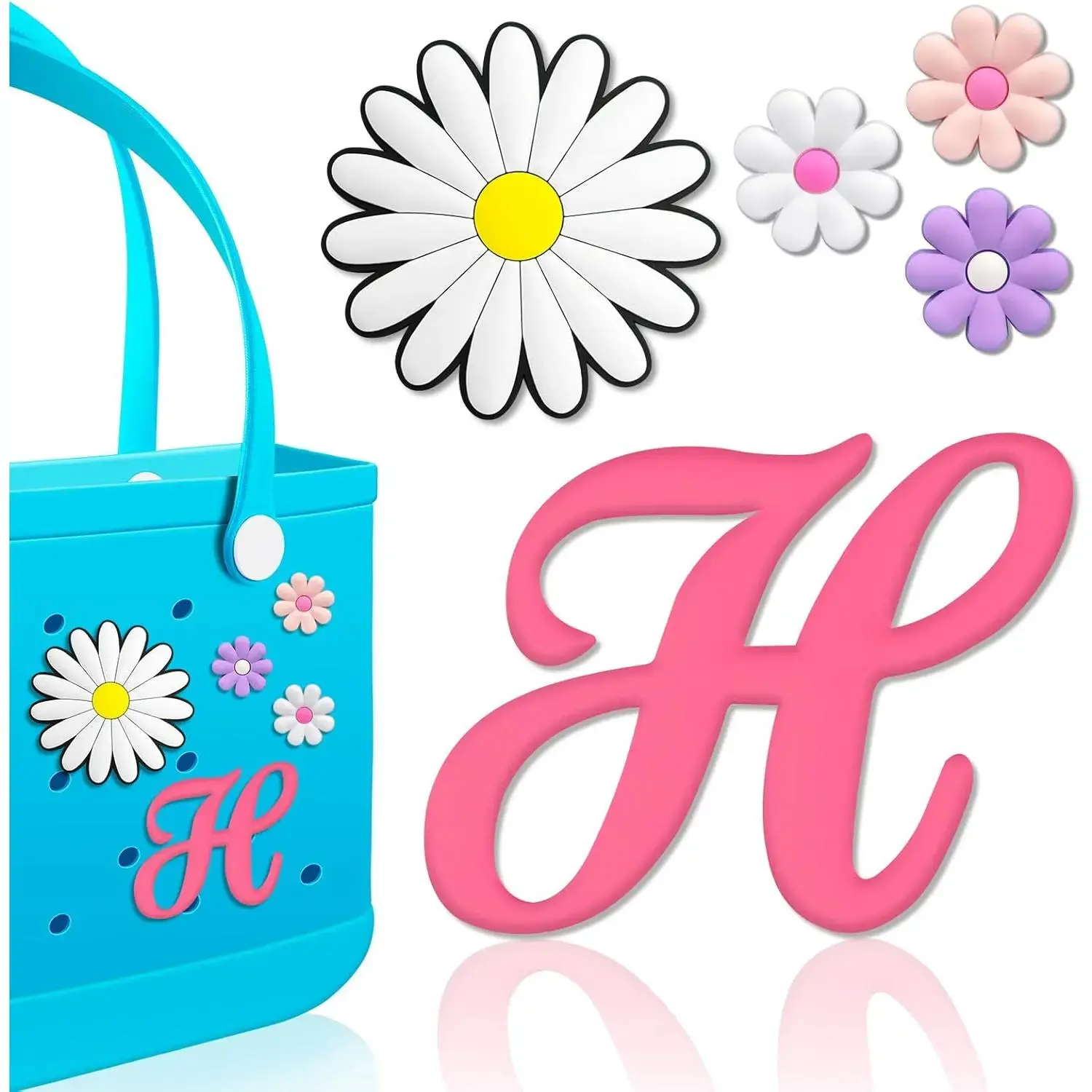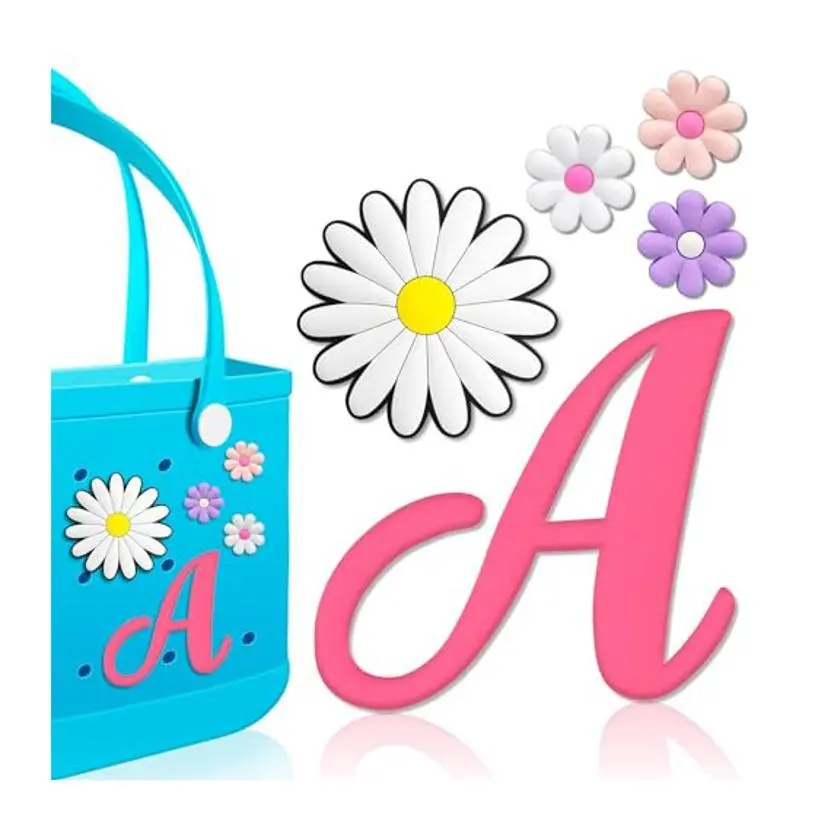 Personalized DIY: Decorate your favorite bag with our Pink Letters Charms, Daisy, small flowers ornaments, which can highlight your uniqueness, but also design you and your related people's names, mottos, so that your bag is beautiful and interesting.