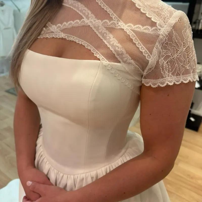This Short Sleeve Bolero is ideal for bridal and beyond events. It offers a versatile design that complements various dress styles and looks. The bolero's short sleeves make it suitable for both formal and semi-formal settings. Enhance your look with this elegant piece.