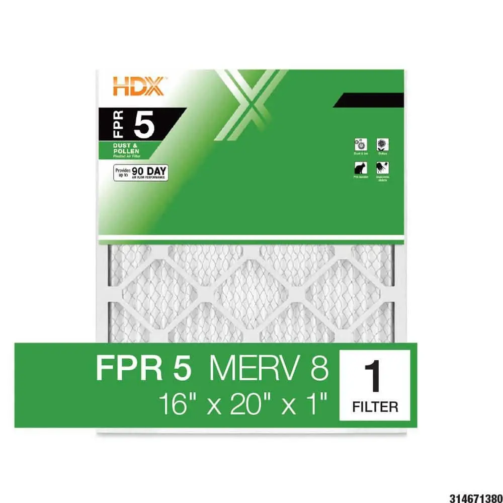 ·HDX 16x20 Air Filter with pleated, wire‑backed synthetic media captures dust, pollen, pet dander, and other particles.