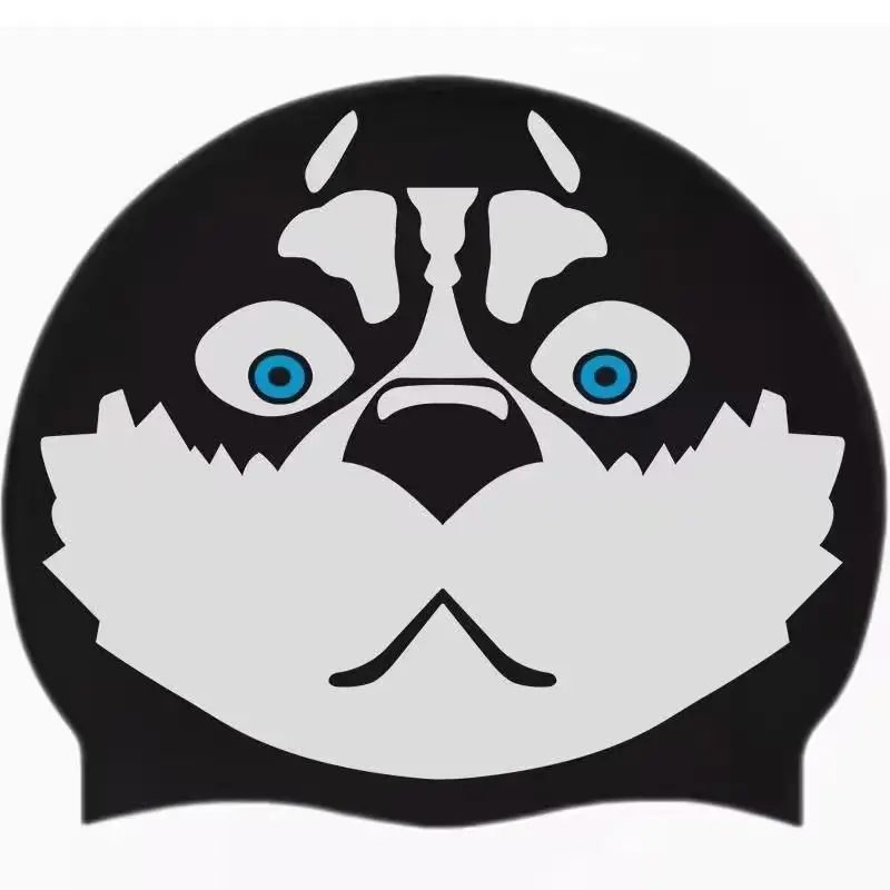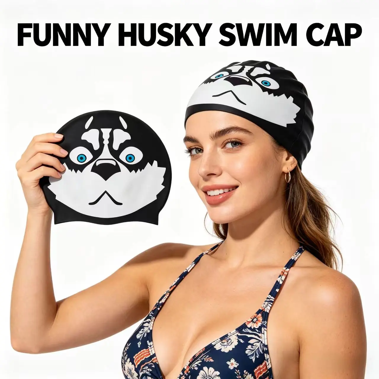 Husky Funny Swim Cap High Elastic Large Size Waterproof Unisex Cute Cartoon No Head Pain for Men Women Adults Kids