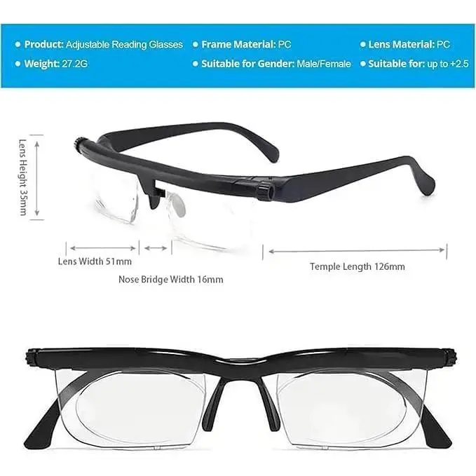 Customizable Magnification for Perfect Clarity - Discover the convenience of personalized vision with our Adjustable Reading Glasses! Effortlessly fine-tune the magnification on each lens to suit your eyes' specific needs. Say goodbye to multiple pairs of readers and experience crisp, clear vision for any reading distance, whether you’re browsing a book or reading fine print on your smartphone.