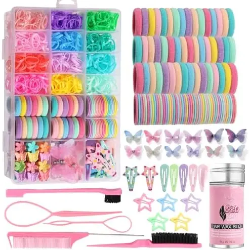 [ Hair Accessories Set]You will be get a variety of accessories in one package, which includes 1200 count hair elastics, 50 count seamless cotton hair ties, 100 count elastic hair ties, 12 count hair barrettes, 12 count butterfly hair clips, 20 count mini hair claws, 1 hair wax stick, 3 hair combs, 2 count hair tail tools, 1 flexible storage box