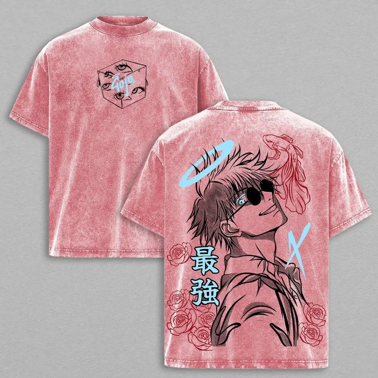 Gojo Satoru Vintage Washed Oversized Tee – Jujutsu Kaisen Heavy Cotton Anime Streetwear T-Shirt, Unisex Gift for JJK Fans, Anime Aesthetic Outfit VSB