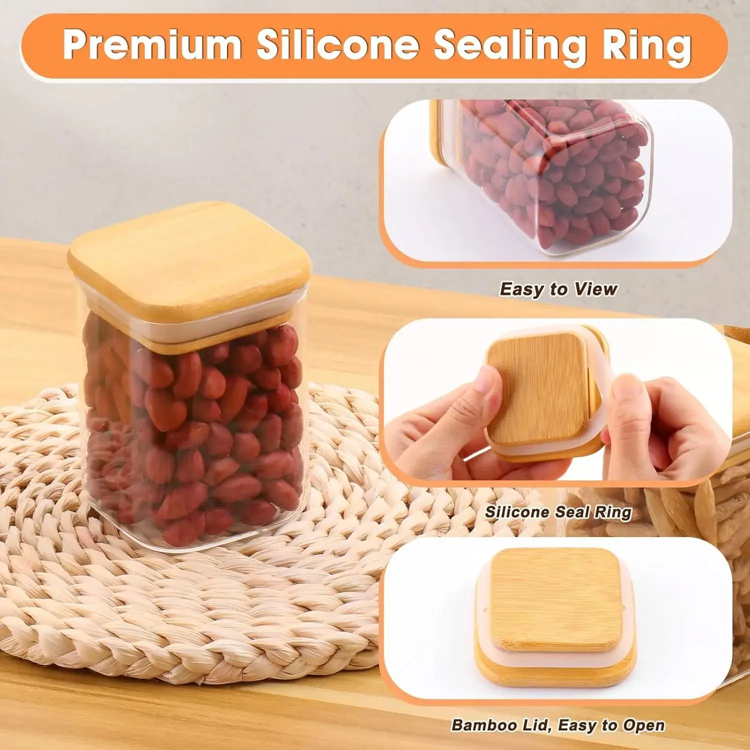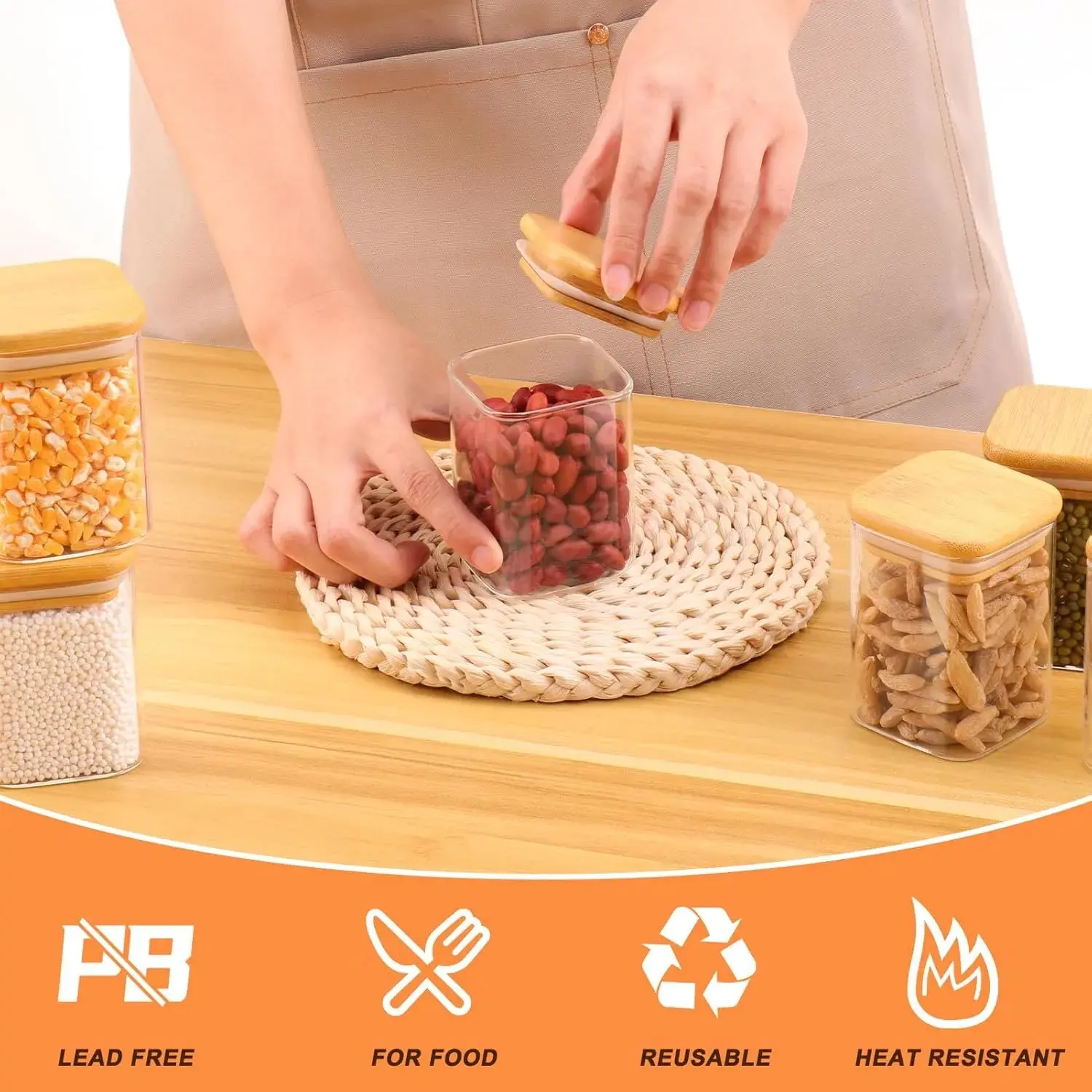 Stylish and Functional Design: The glass spice jars with bamboo lids offer a modern aesthetic that enhances kitchen decor while providing a clean and organized storage solution for spices and dry goods