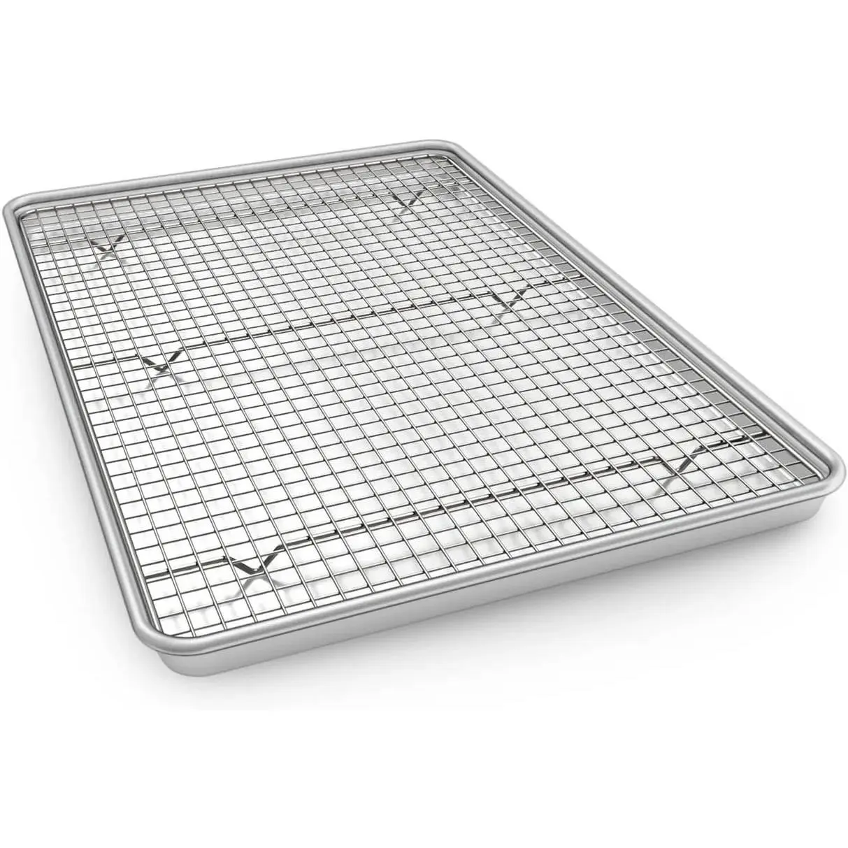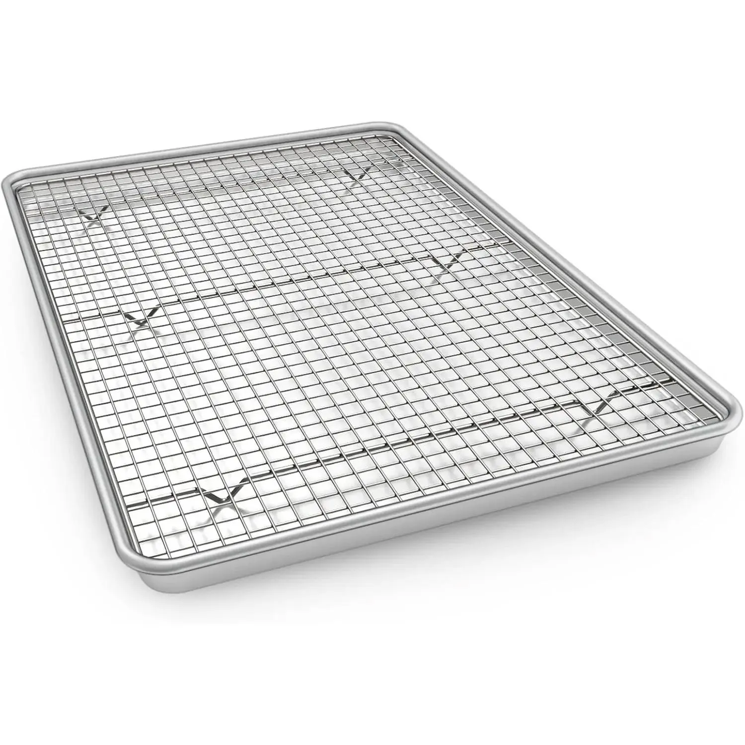 Durable Baking Pan Set: This baking pan set includes 1 nonstick cookie sheets and 1 stainless steel cooling rack.Pan exterior dimensions 23.62 x 15.87 x 1.06 inch and interior dimensions 22.64 x 14.6 x 0.59 inch, will allow you to cook in bigger batches in less time.You can easily prepare sheet pan dinners and it’s also great for your weekly meal preps.Works for all cooking techniques such as roasting, broiling, grilling, and dehydrating
