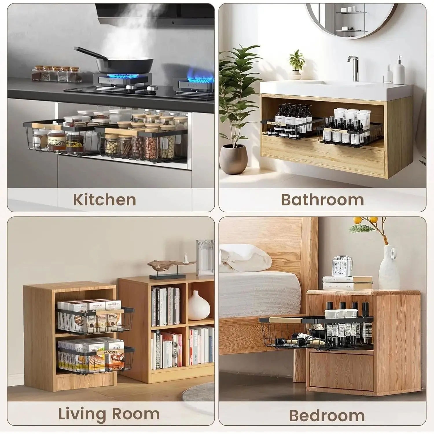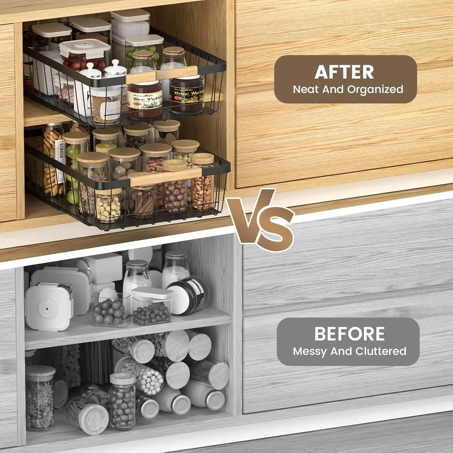 Maximize Space: Transform wasted cabinet space into organized storage with our pull-out basket, it helps keep your kitchen clutter-free. This space-saving design optimizes storage in your kitchen, pantry, or bathroom, keeping your home neat and organized.