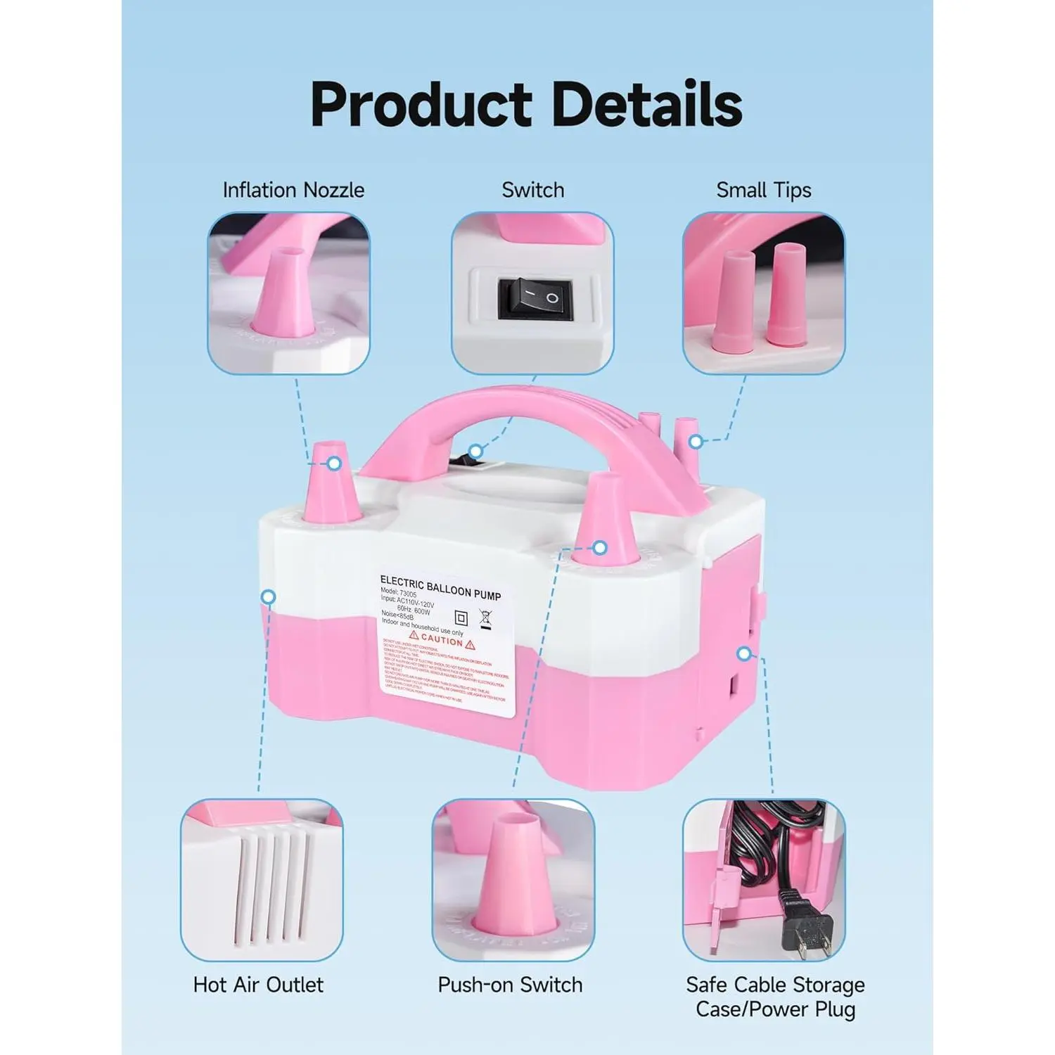 Super-Fast Inflation & Time Saver 600W inflates 50+ latex balloons per minute-no more sore cheeks or dizziness from manual blowing!Semi-automatic (press-to-inflate) and automatic modes let you choose between precise control or hands-free operation for birthdays, weddings, or holiday decor.