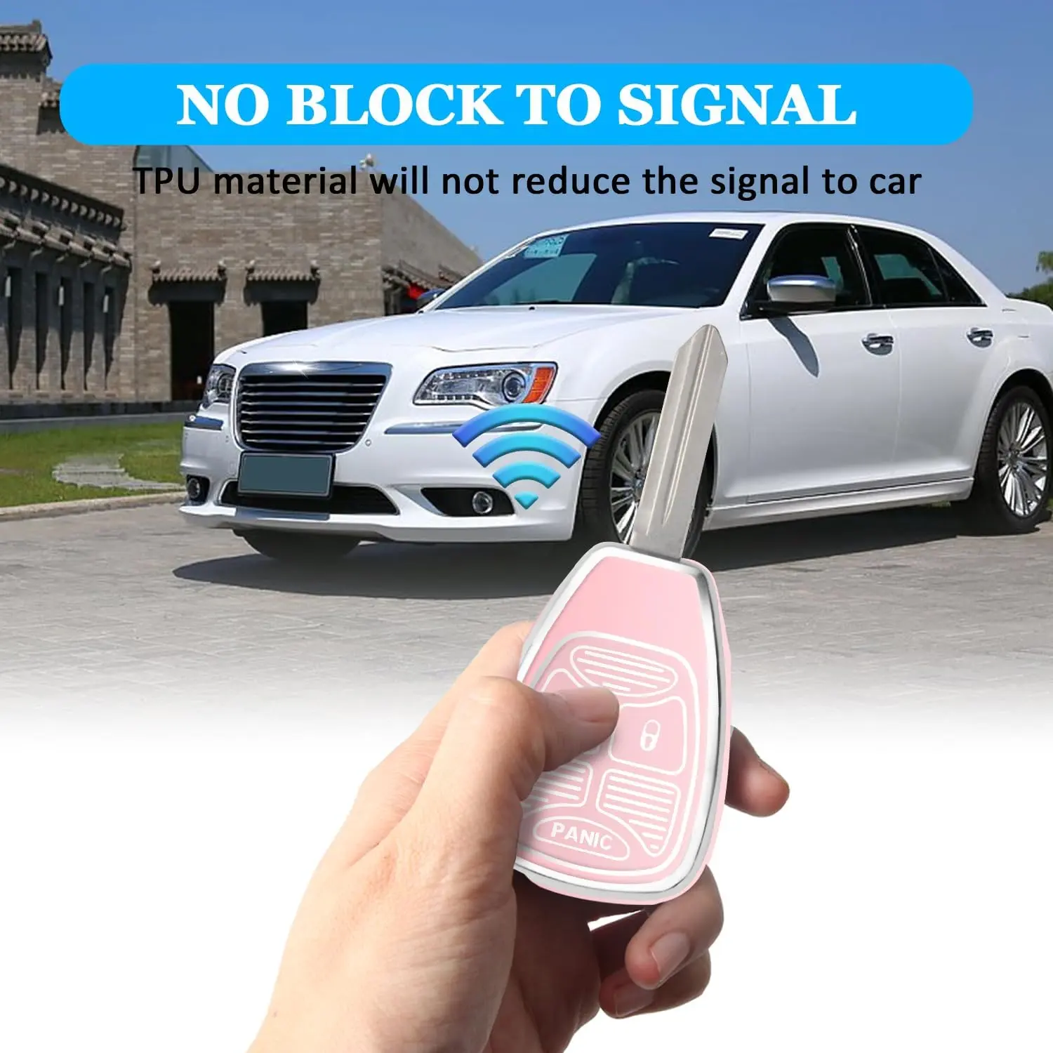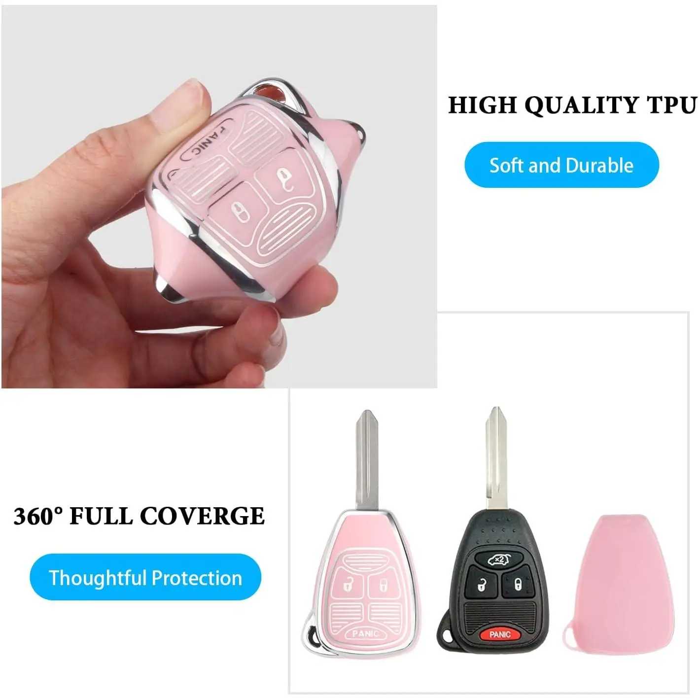 THE WELL KEPT for Jeep Key Fob Cover, Soft TPU Key Fob Shell for Jeep Wrangler/Compass/Dodge Ram 1500 2500 3500/Durango/Caliber/Nitro/Dakota/Chrysler/Patriot, Smart Control Key Protector (Pink, 3 Button)