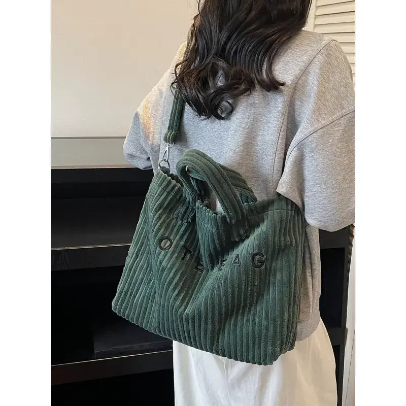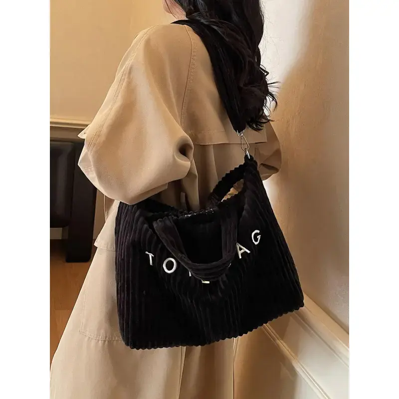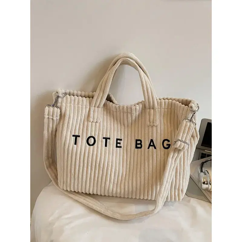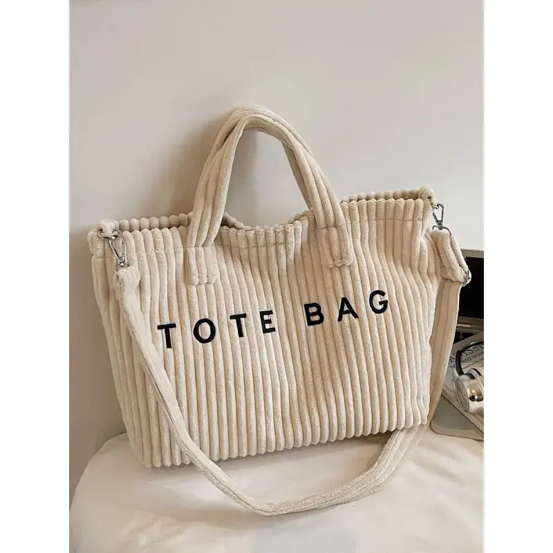 Retro leisure simple single shoulder tote bag, three-dimensional stripe texture letter design, hand-held oblique cross two uses, fashion practical versatile suitable for daily commuting, shopping dating, etc., Casual Tote Bag