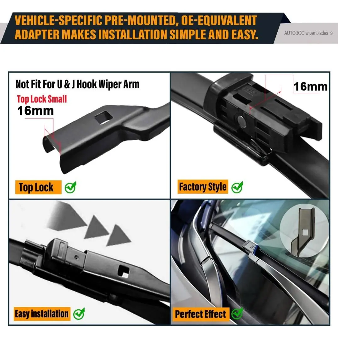 [ALL- WEATHER PERFORMANCE]- AUTOBOO Wiper blade includes 1,500 pressure points which fit your glass perfectly and deliver the quietest performance.Together enhance the visibility and the driving safety.