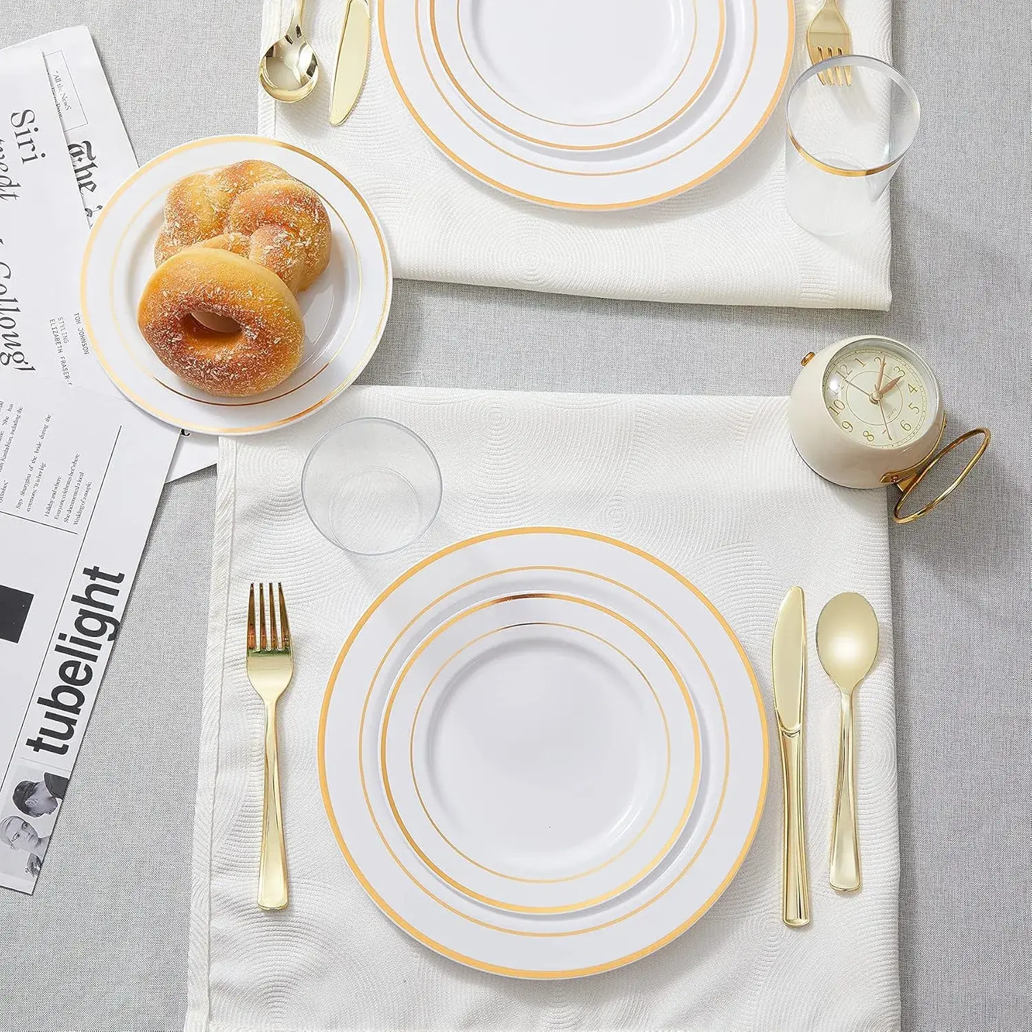 DISPOSABLE & EASY TO CLEAN: Disposable and reusable, free yourself and your family!Toss these gold plastic silverware after party for maximum convenience, or wash by hand for the next time usage.Tip: Not recommended for microwave oven or dishwasher