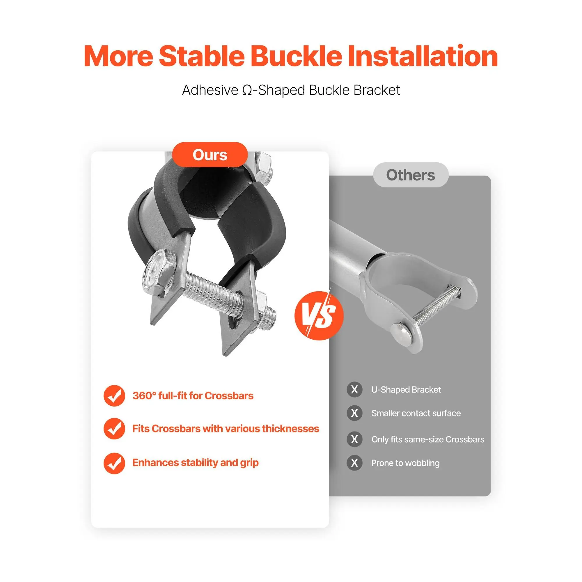 Compared to standard U-brackets, the enhanced design fits a variety of round rails (1.3-1.5) and conforms tightly to the curve. The added adhesive backing increases grip and stability, reducing movement in wind or rain.
