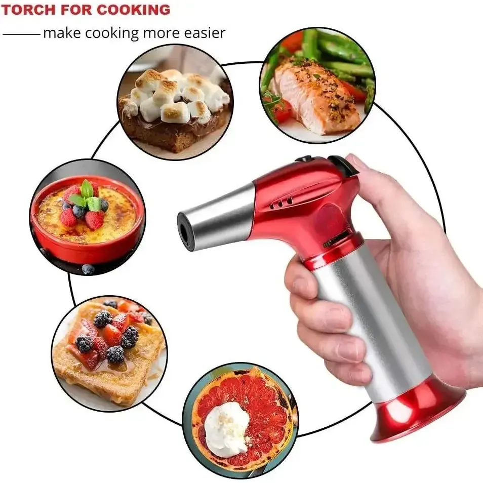 Refillable Butane Culinary Torch: Tired of worrying about which type of butane gas tank to choose?Don’t worry!Our torch works with any brand of small butane gas tank, whether it has a long or short nozzle.Simply refill directly, or use the included red adapter to lengthen the nozzle.