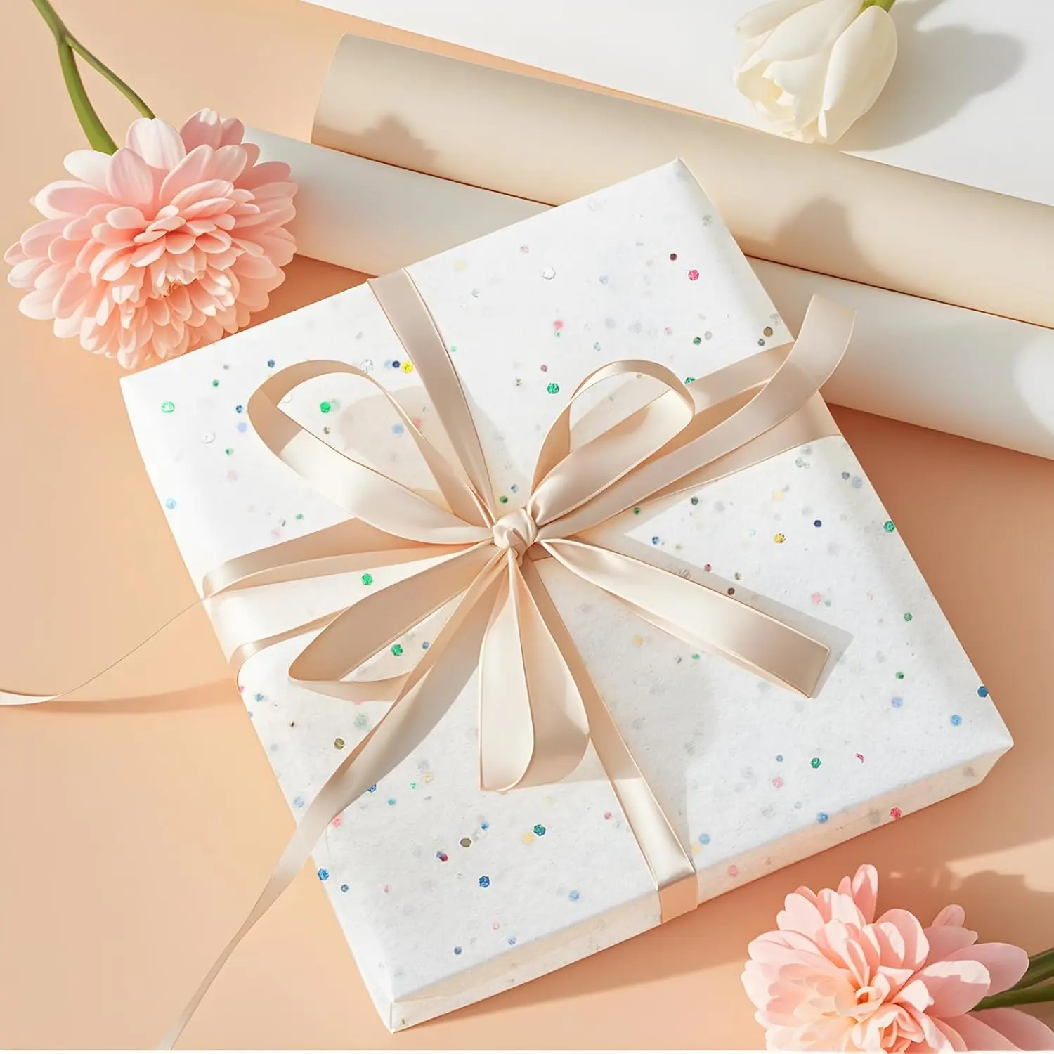 ✨ Subtle & Elegant Embedded Glitter: Our tissue paper features glitter embedded directly into the paper, ensuring a luxurious shimmer that catches the light. Perfect for adding a touch of elegance to weddings, birthdays, and holidays. The classic white with glitter is the perfect neutral for any celebration.