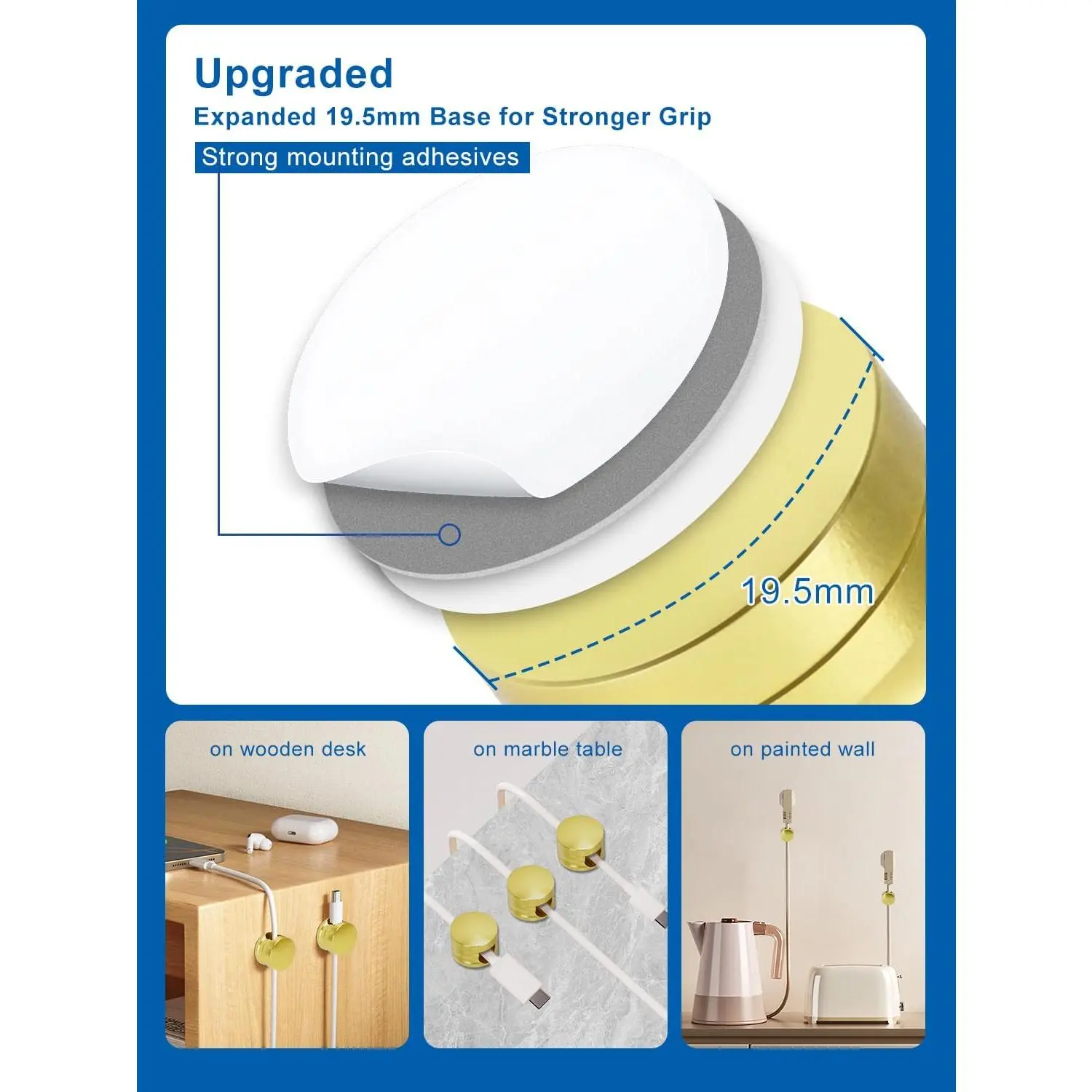 Stronger Adhesive & Larger Base – Our adhesive clips feature extra- glue and a bigger base (0.77" diameter) for a secure hold on desks, walls, or as a charger holder for nightstand.desk wire holder to stop cord slippage